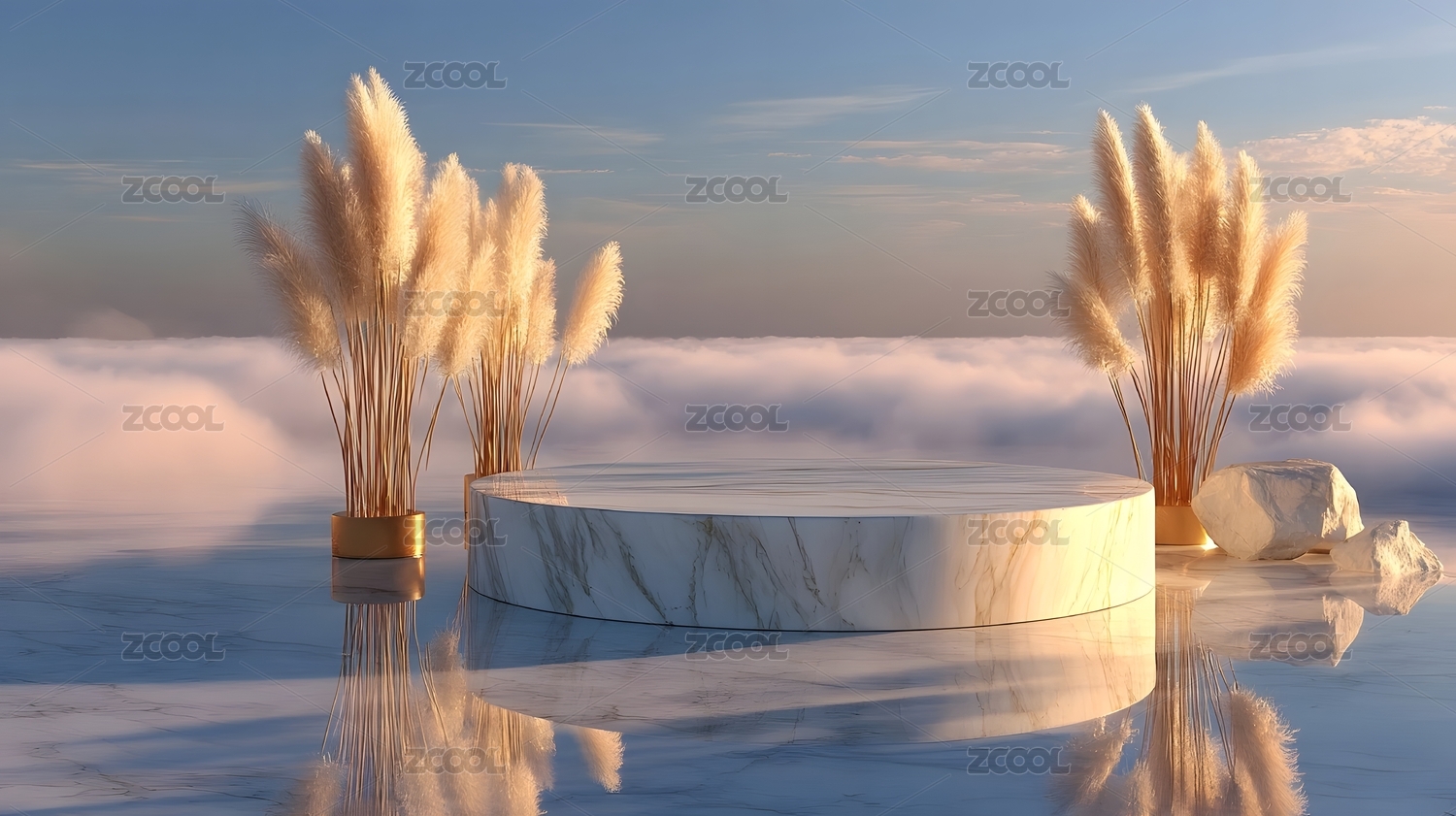 简约大理石展台与芦苇