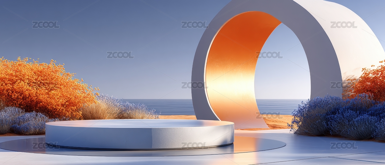 夕阳下简约产品展台