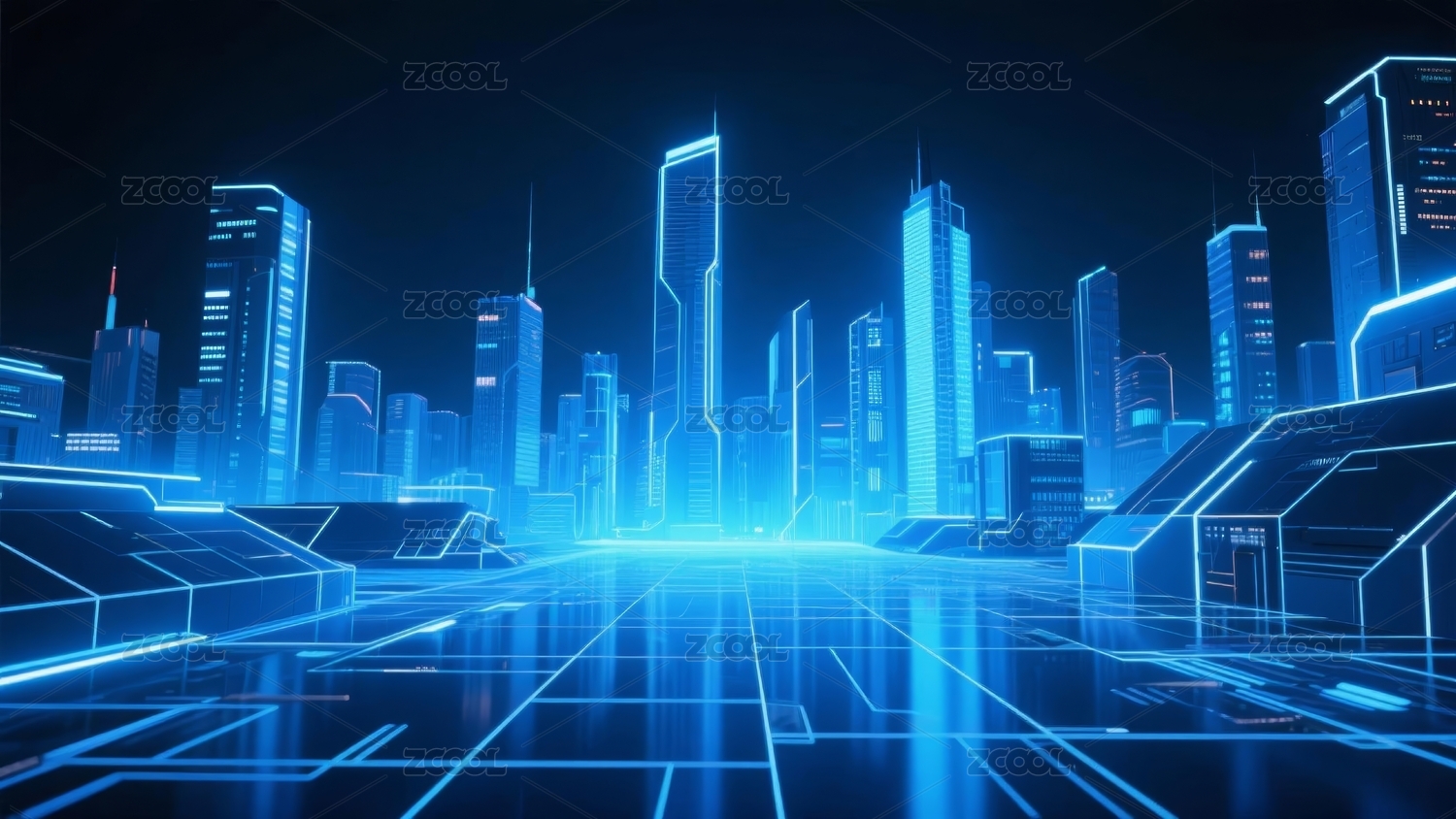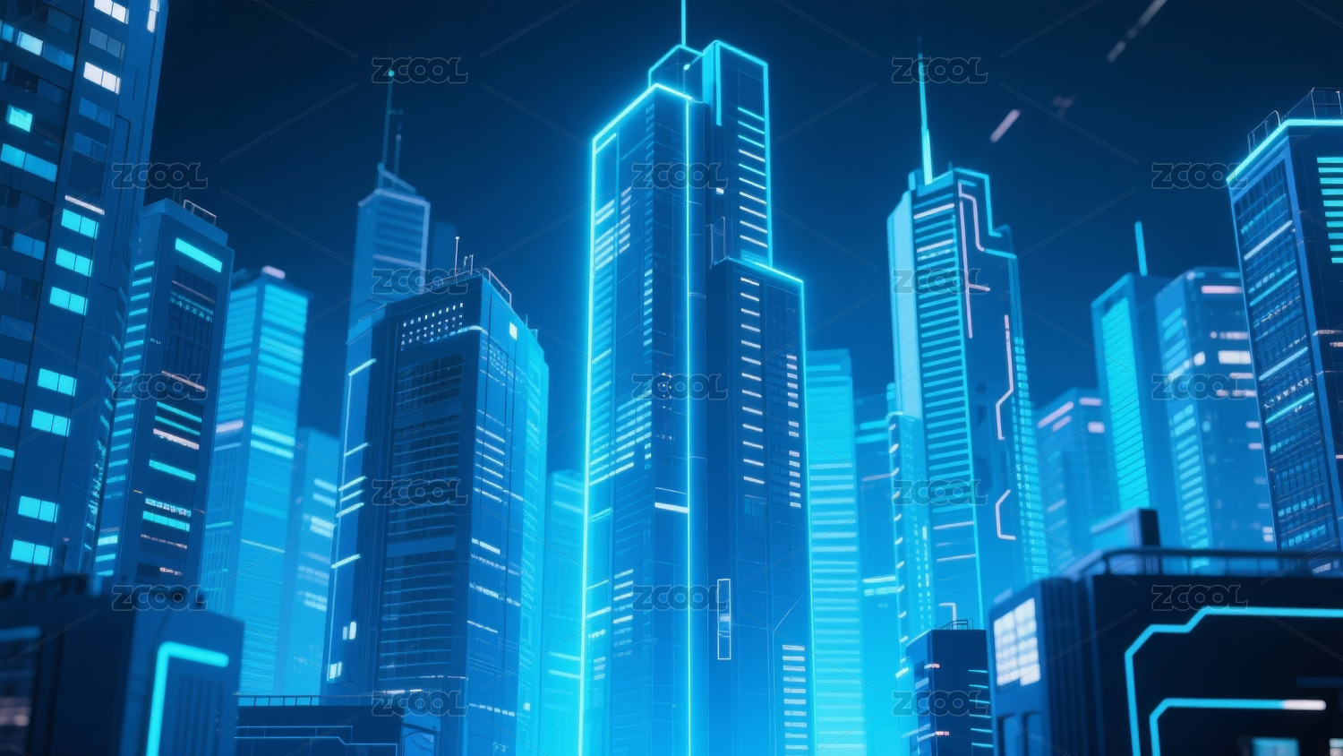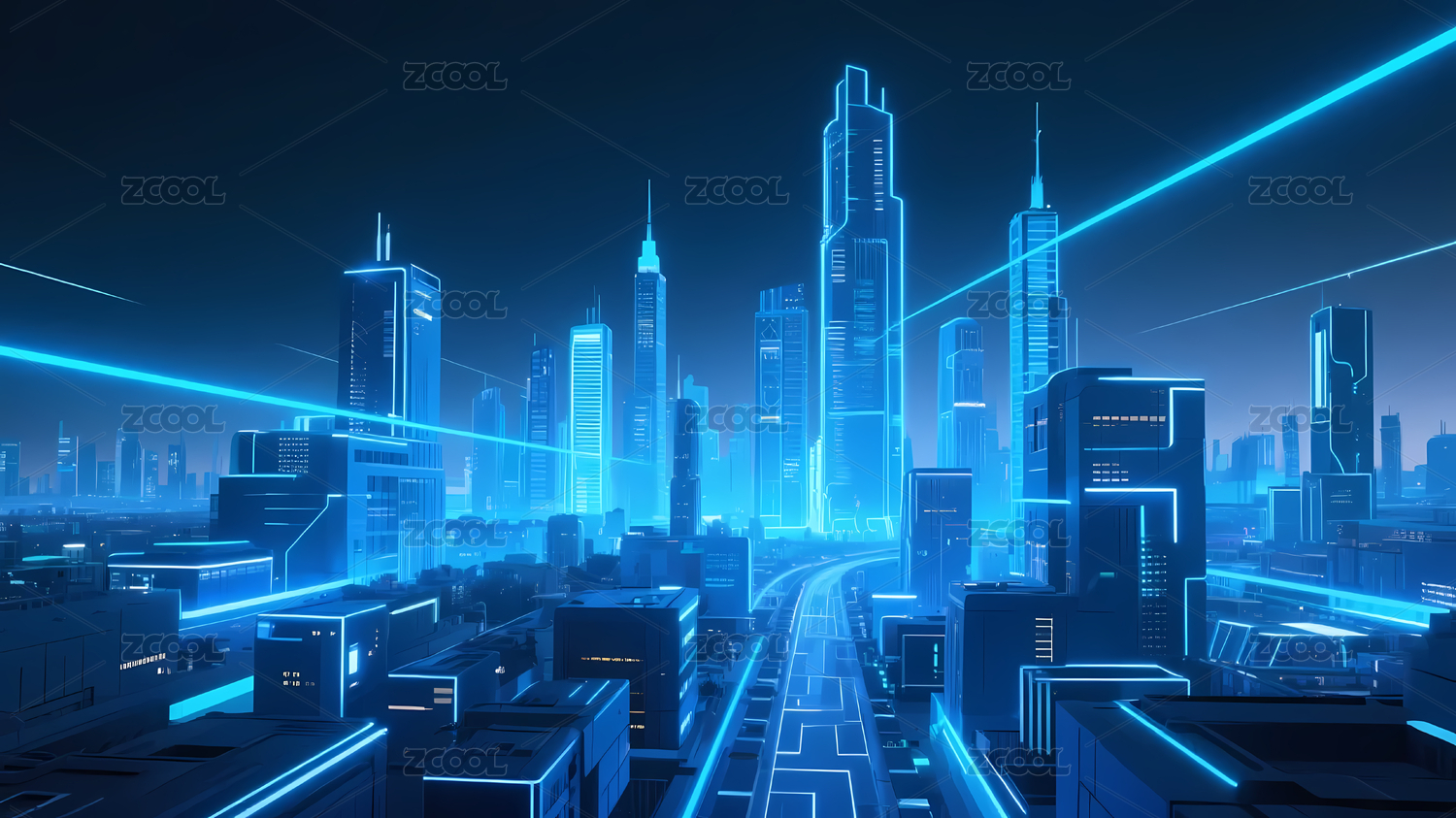 未来,城市,霓虹灯,高楼,科技,夜晚,建筑,光线,现代化,虚拟