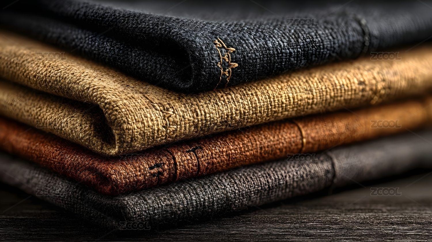 复古牛仔布料堆叠特写