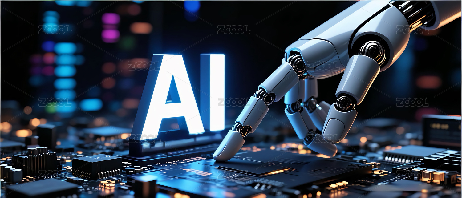 人工智能机械臂触碰AI图标