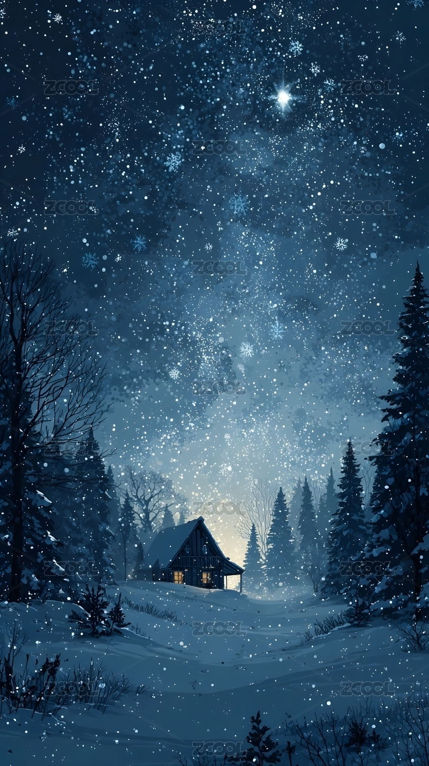房屋,树木,烟囱,自然,风景,寒冷,雪地,星空,雪景,夜空