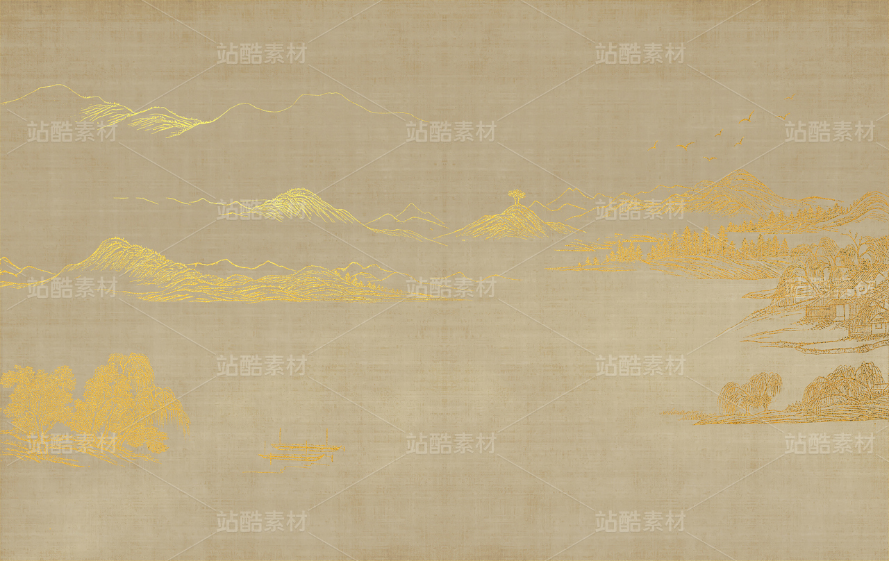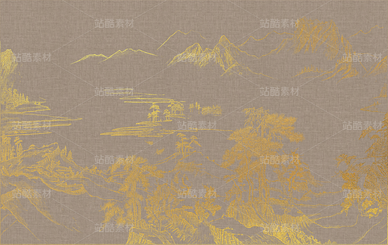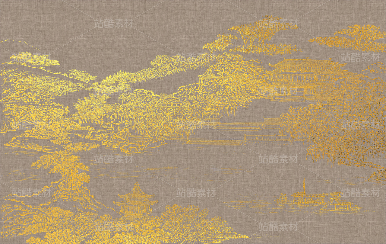 高清新款米灰布纹亭台楼阁新中式工装背景墙04