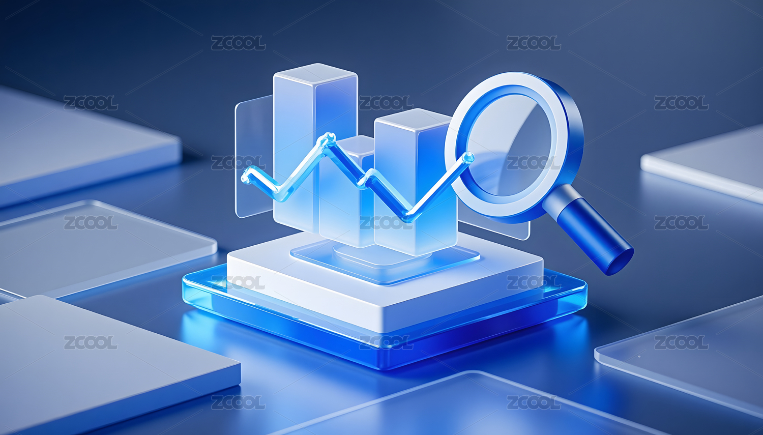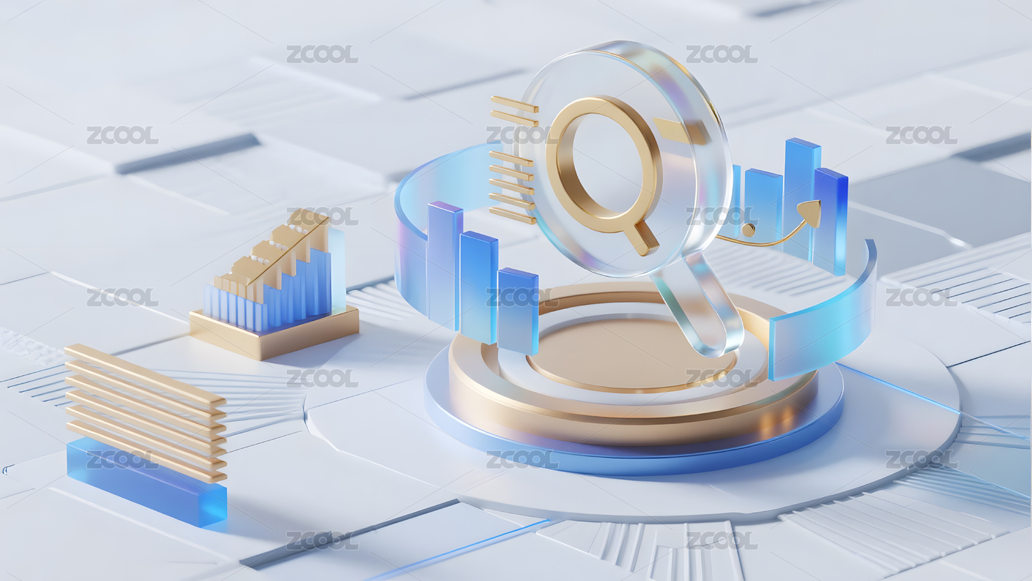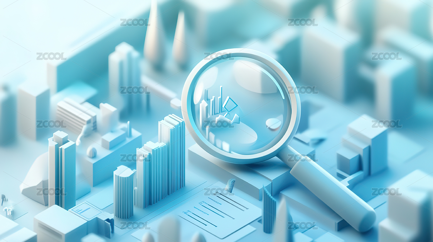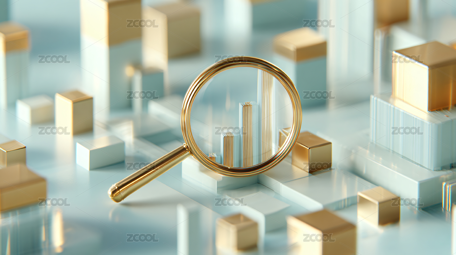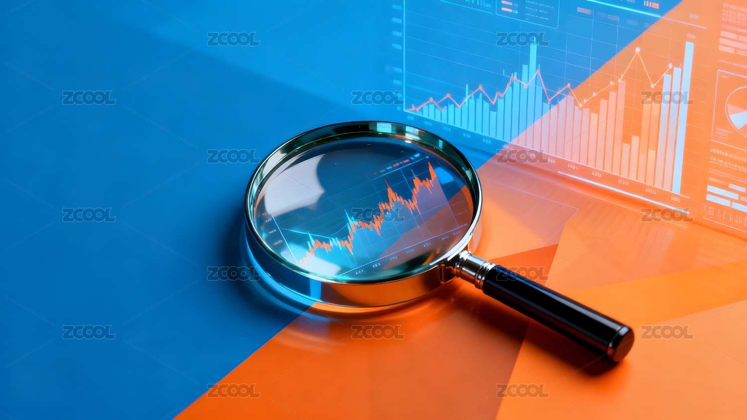 放大镜,金蓝,方块,图表,观察,数据,分析,商务,创意,简约