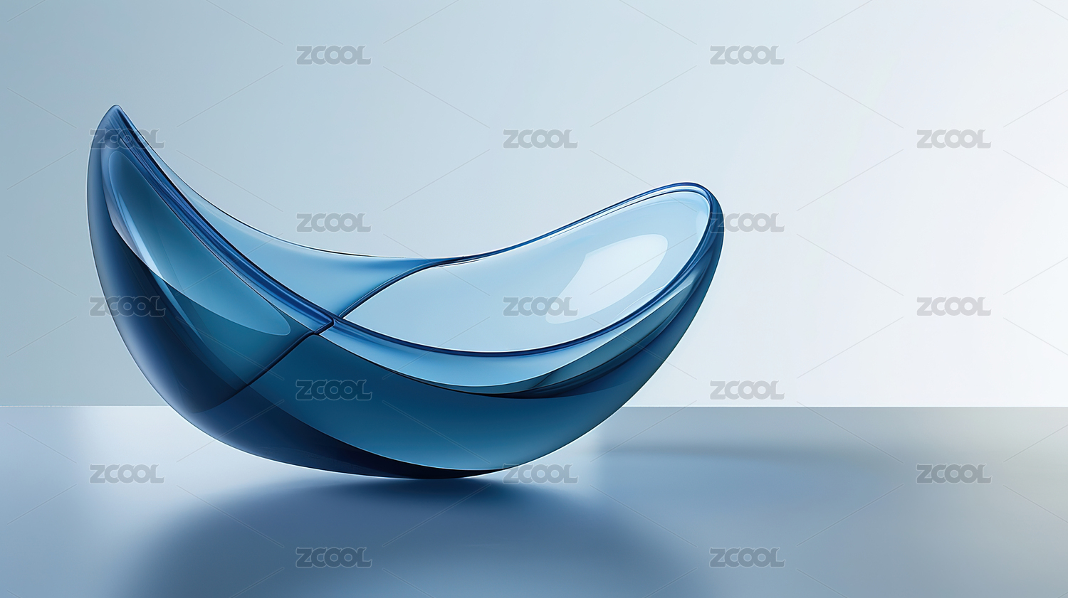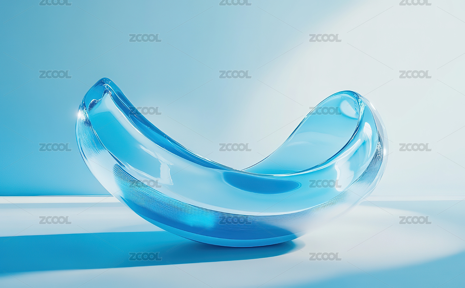 蓝色背景下桌子上的蓝色空杯子特写镜头