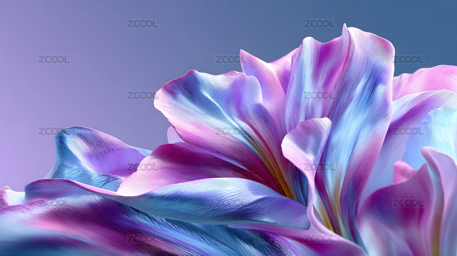 梦幻紫蓝渐变丝绸花瓣特写