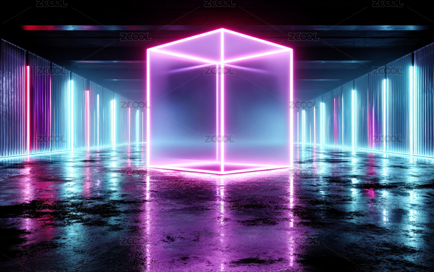 未来感霓虹立方体走廊