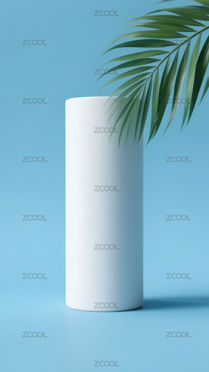 蓝色,植物,自然,清新,绿叶,白色,光影,圆柱,龟背竹,静物