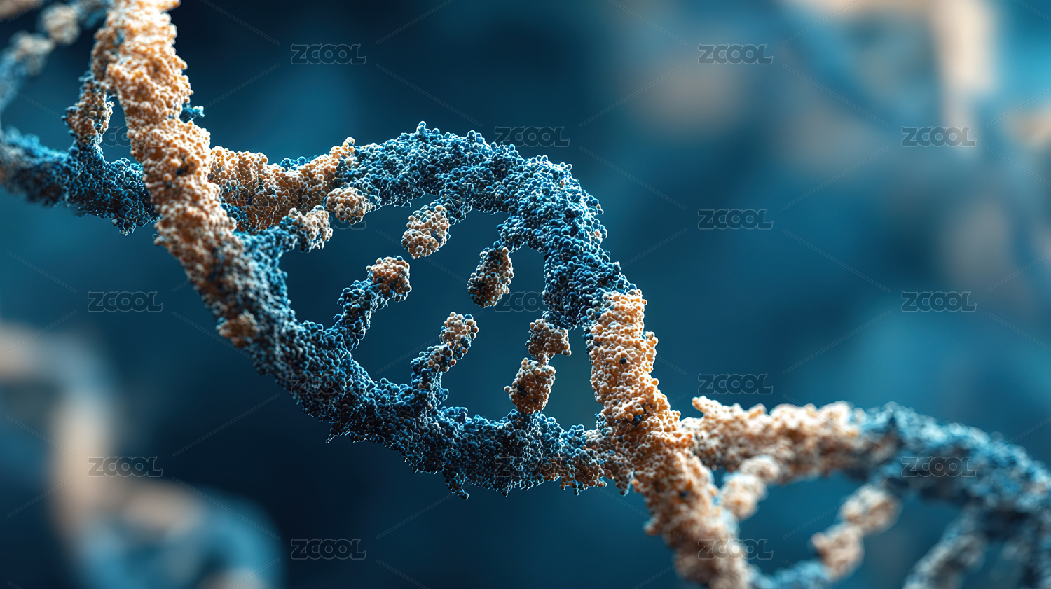 DNA螺旋结构 特写 科技感 蓝色橙色