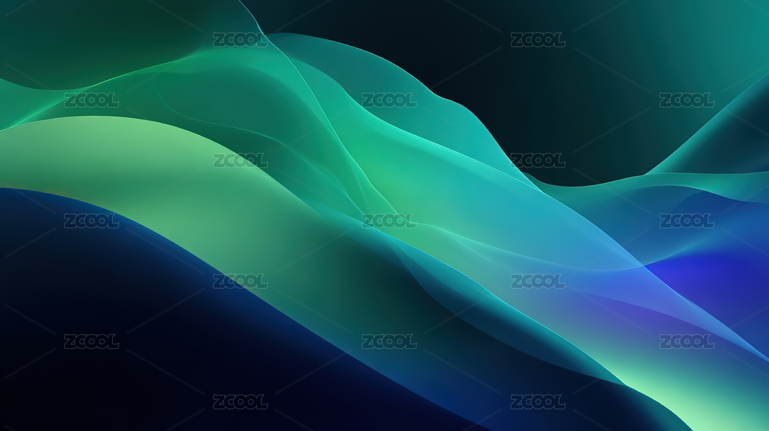 深色绿蓝渐变波浪线