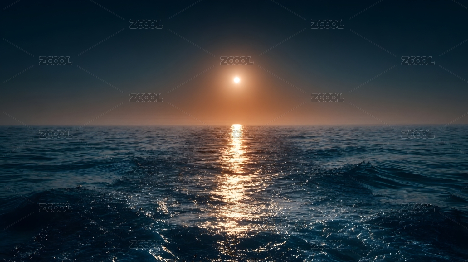 日月同辉海面倒影
