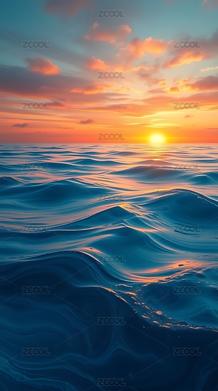 海面落日波涛渐起