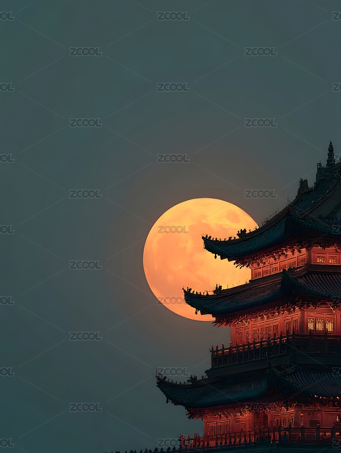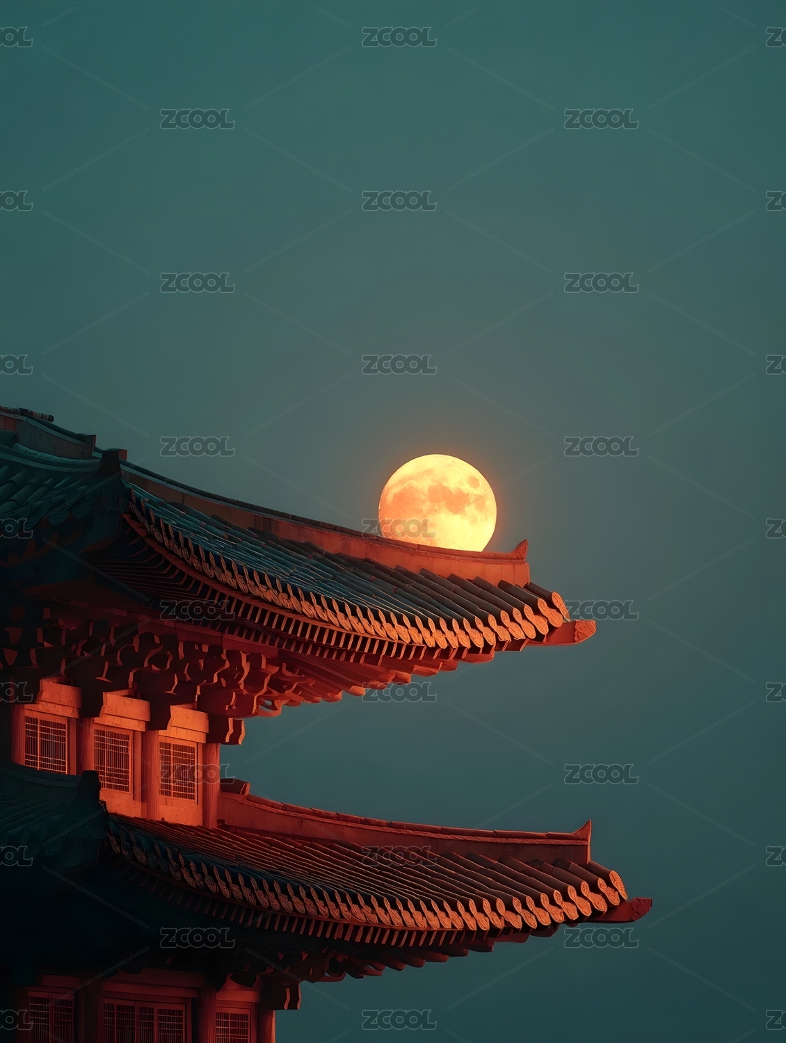 天空,红色,结构,装饰,夕阳,黄昏,月亮,建筑,古建筑,屋顶
