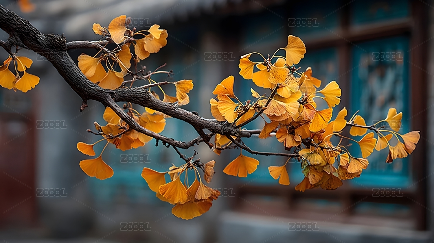 叶子,背景,风景,自然,模糊,黄色,细节,特写,枝条,建筑