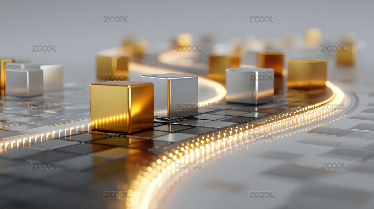 金色,方块,光影,立体,几何,抽象,艺术,设计,现代,科技
