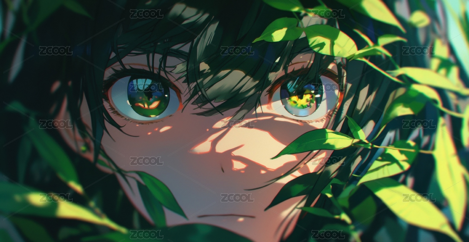 绿叶掩映下的动漫人物特写