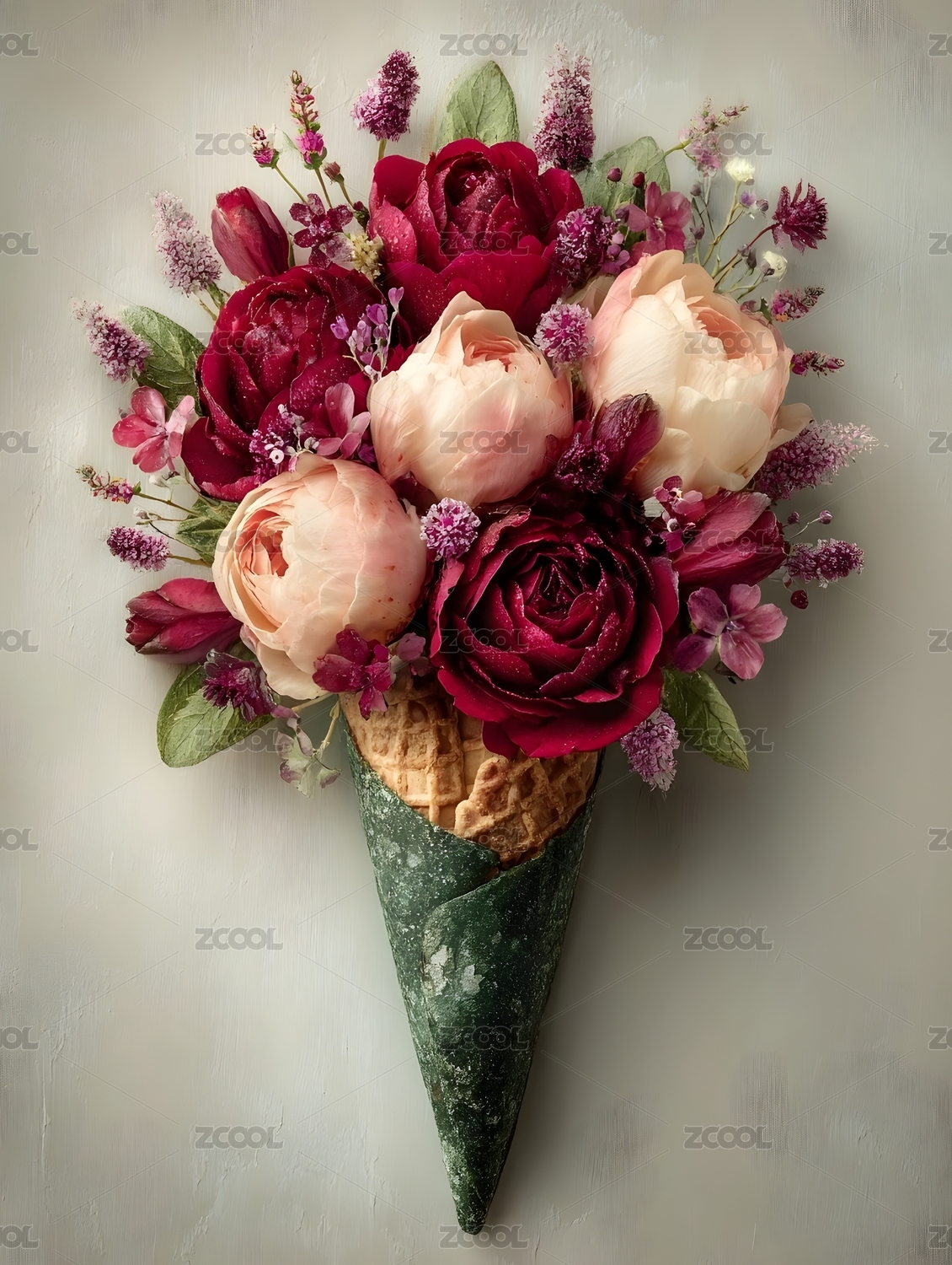 冰淇淋甜筒玫瑰花创意组合