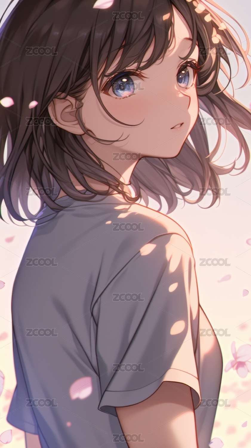 樱花飘落中的少女侧脸