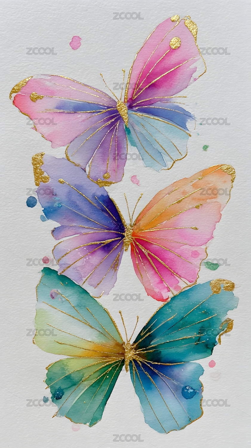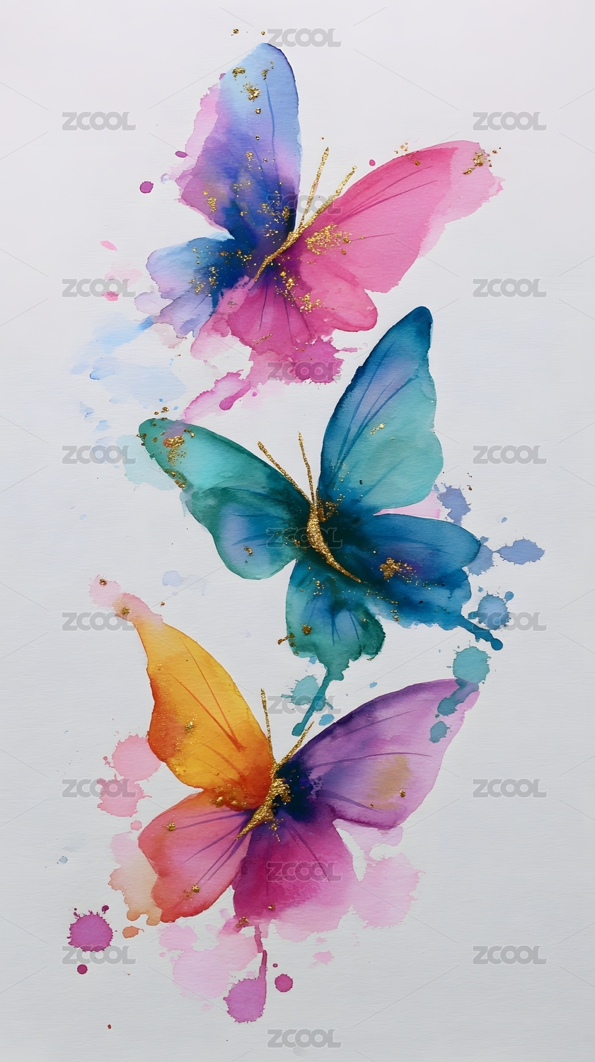 梦幻,水彩,粉色,蝴蝶,唯美,优雅,飘逸,轻盈,柔和,透明