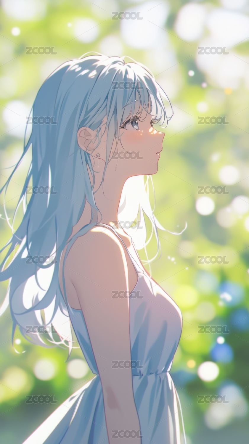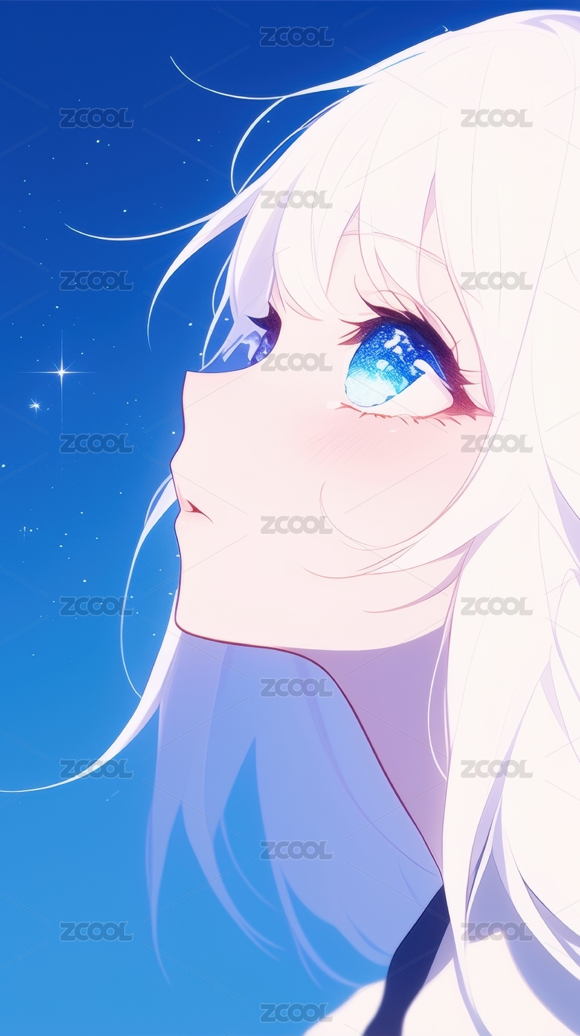 少女,插画,漫画,动漫,日漫,梦幻,艺术,蓝发,侧脸,眼睛