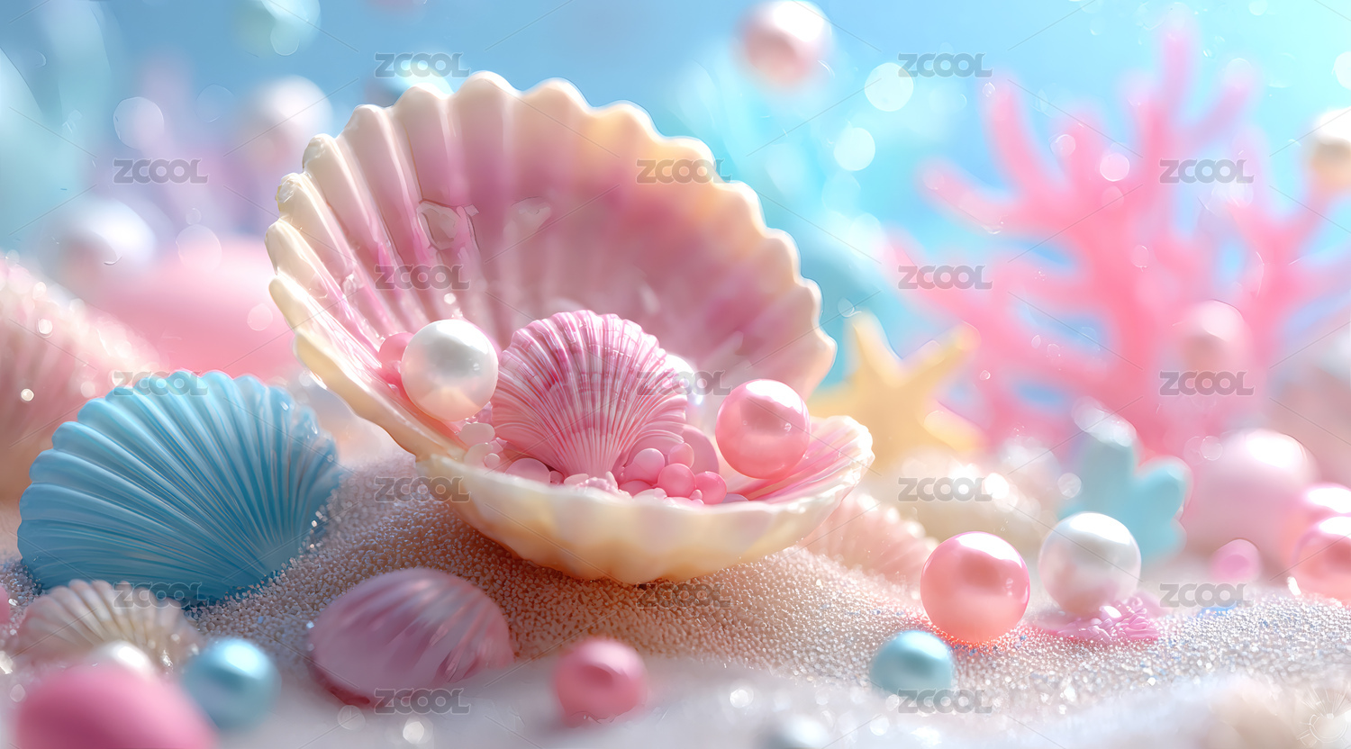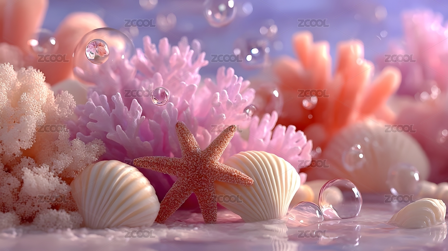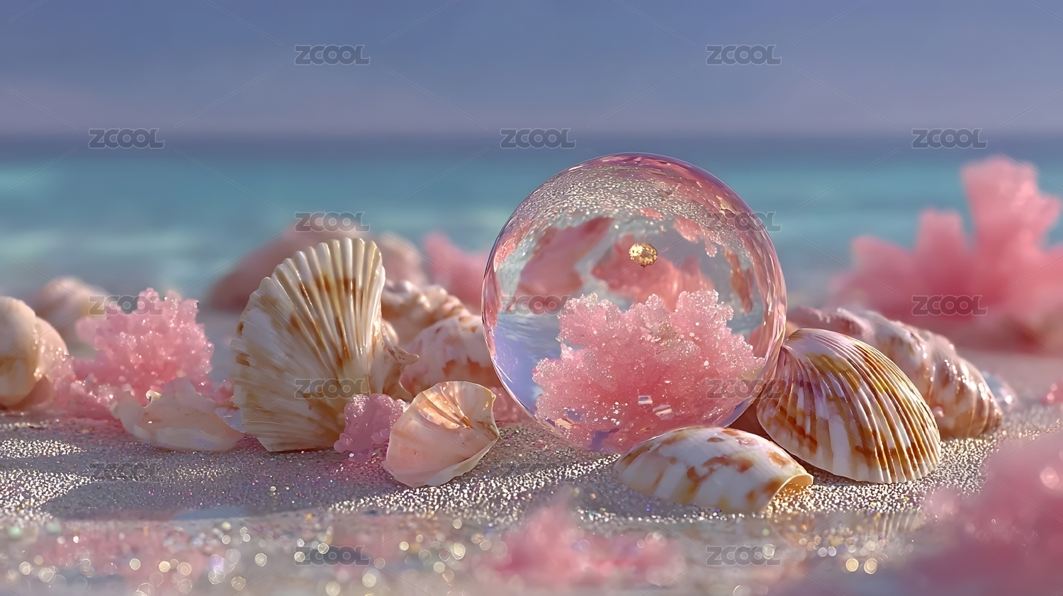 光斑,反射,蓝色,透明,海洋,粉色,贝壳,海滩,水珠,海水