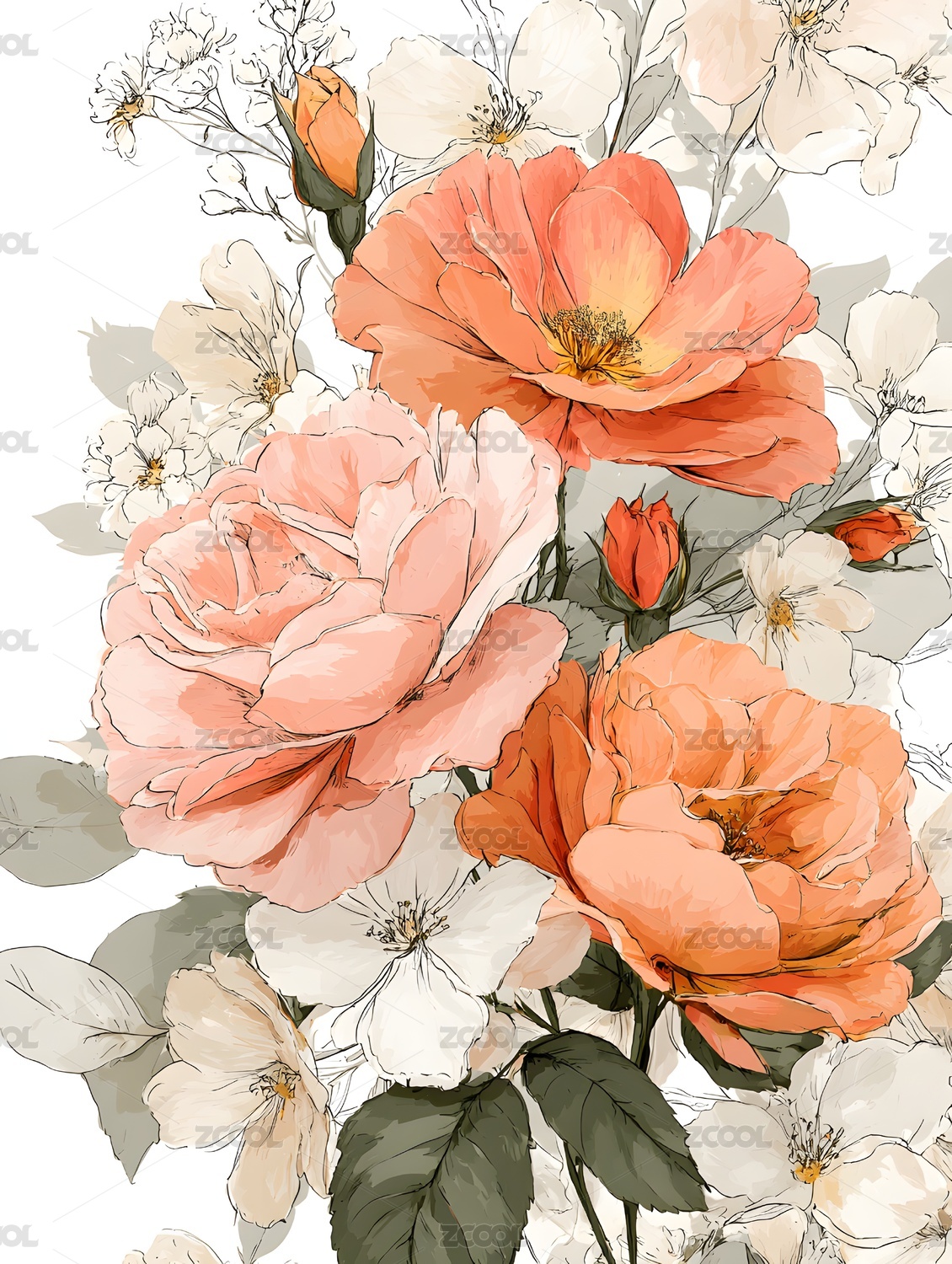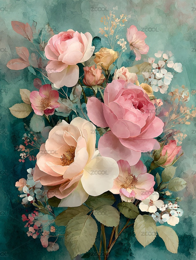 艺术,背景,绿色,花朵,花瓣,植物,叶子,花蕊,枝条,粉色