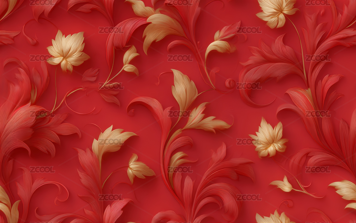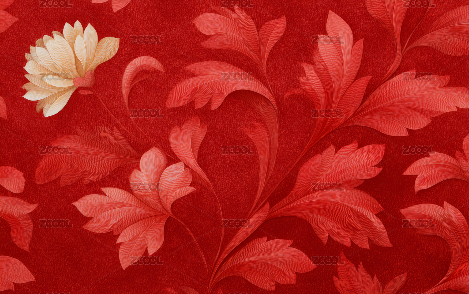 复古的红色花卉纹理艺术背景