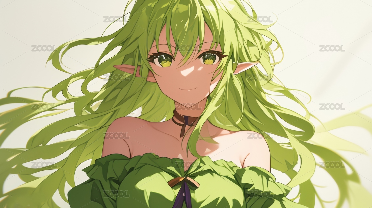 绿发精灵少女的微笑