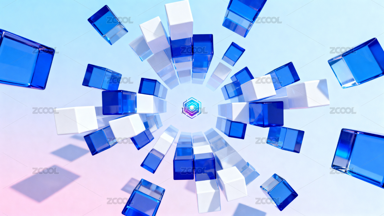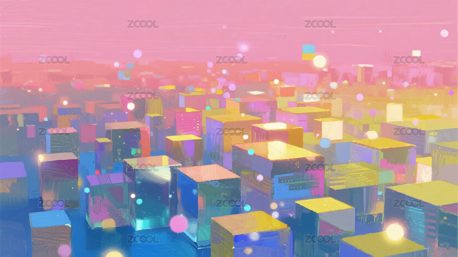 科幻彩色透明荧光色魔方存储器3D赛博插画