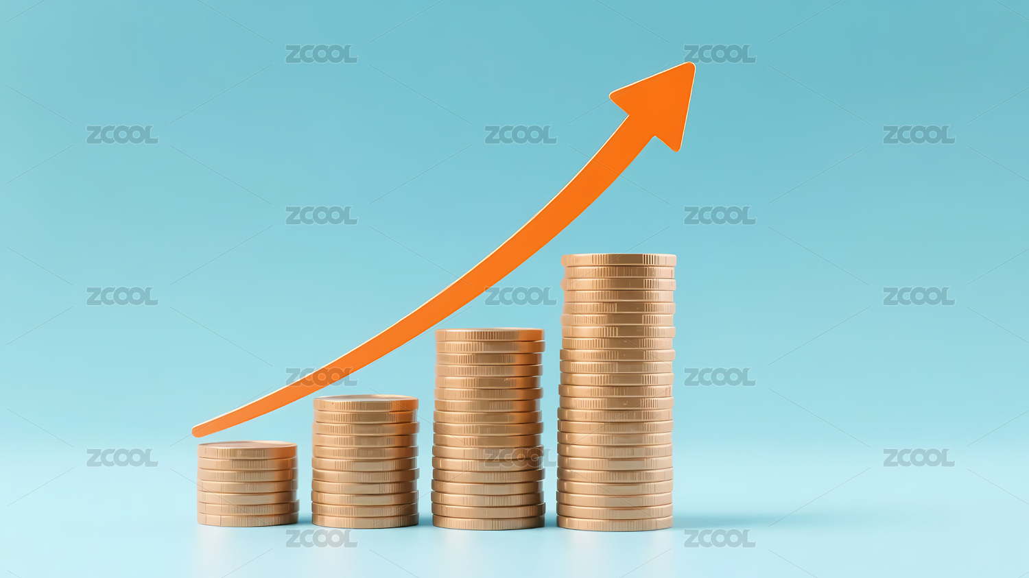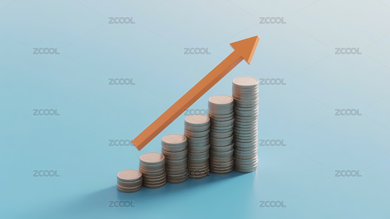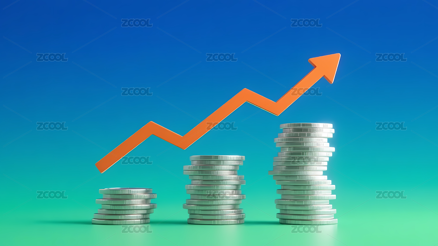 橙色,蓝色,明亮,简洁,硬币,箭头,增长,进步,积极,向上