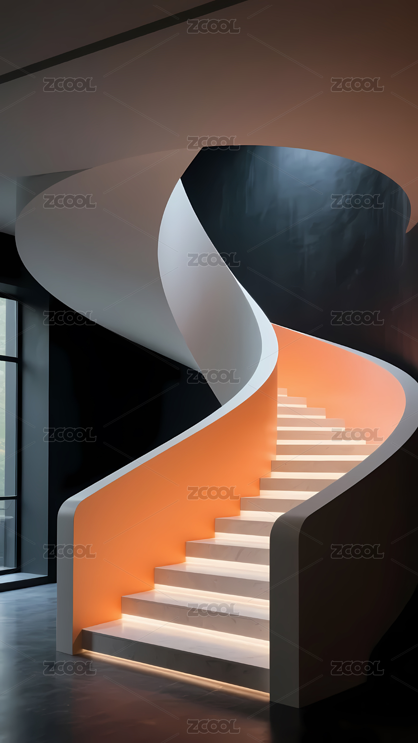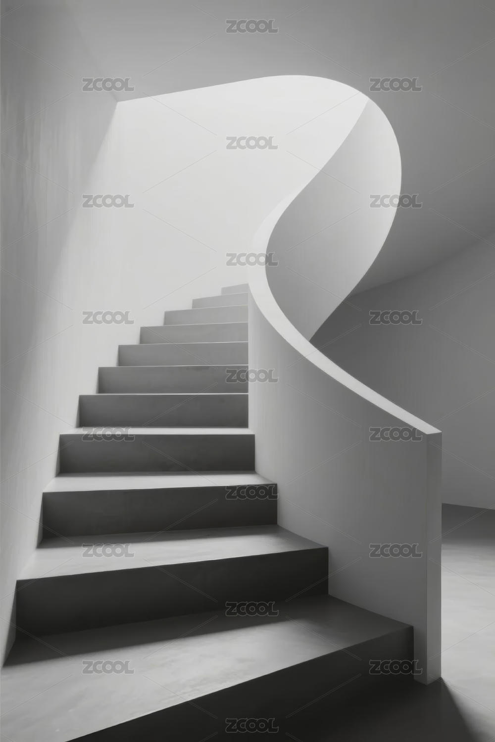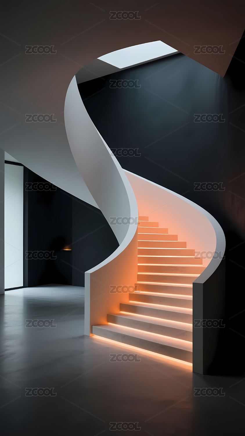 黑色,白色,对比,层次,简洁,现代,楼梯,扶手,墙壁,地面