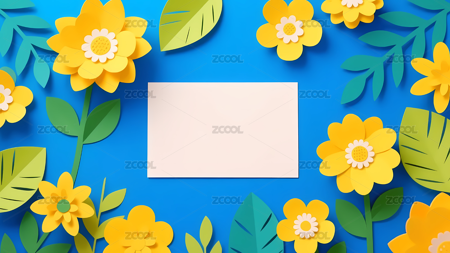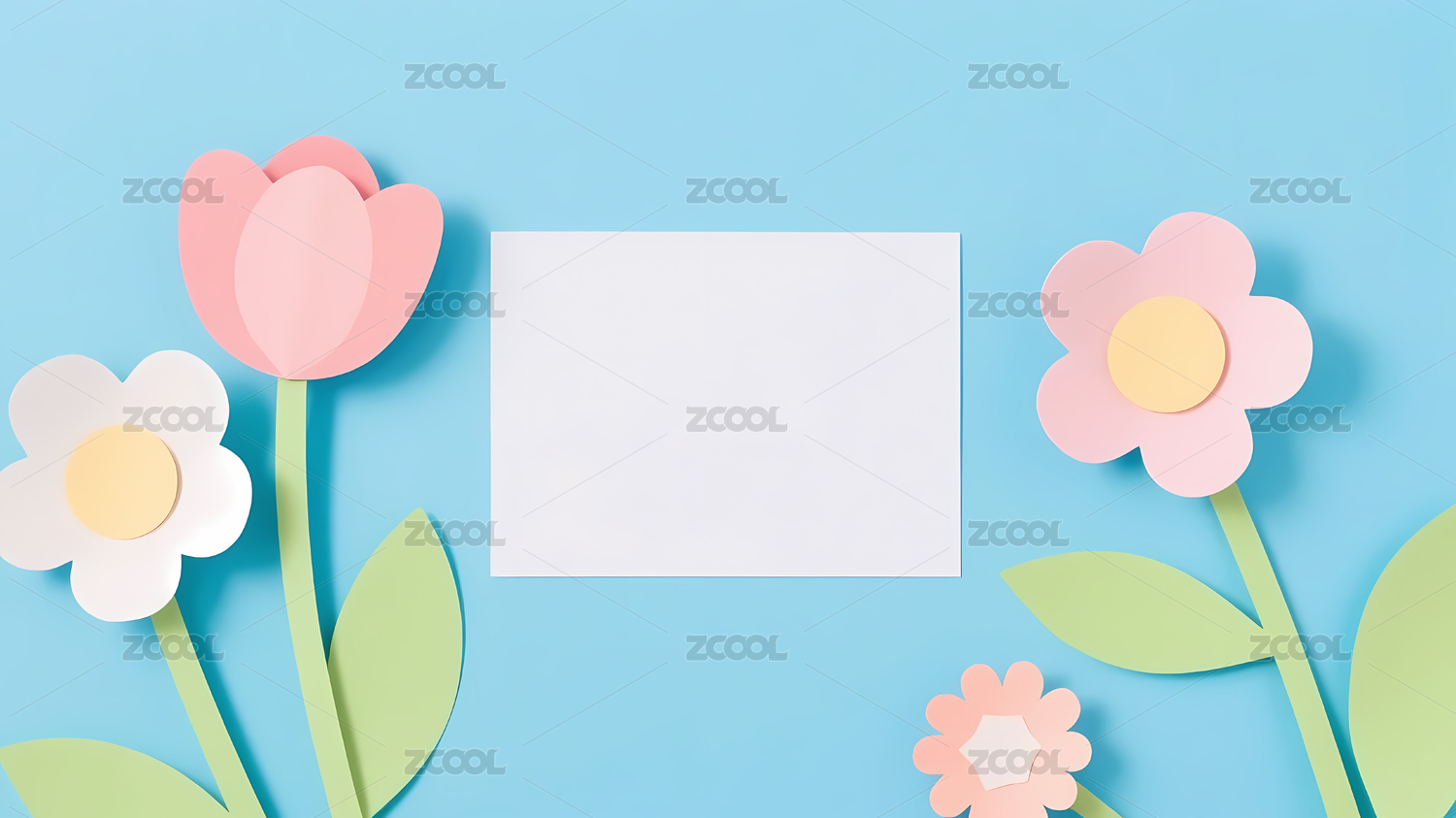 白色卡片花叶蓝色桌面