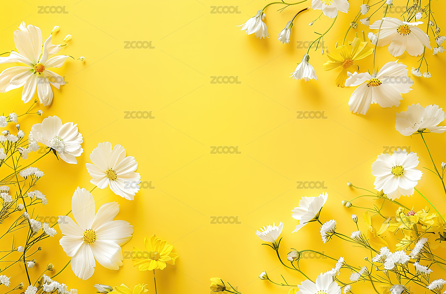 白黄色花朵与黄色背景