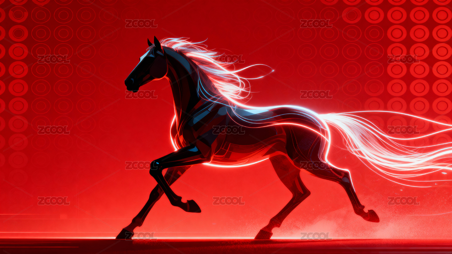 红色背景下的发光骏马奔腾