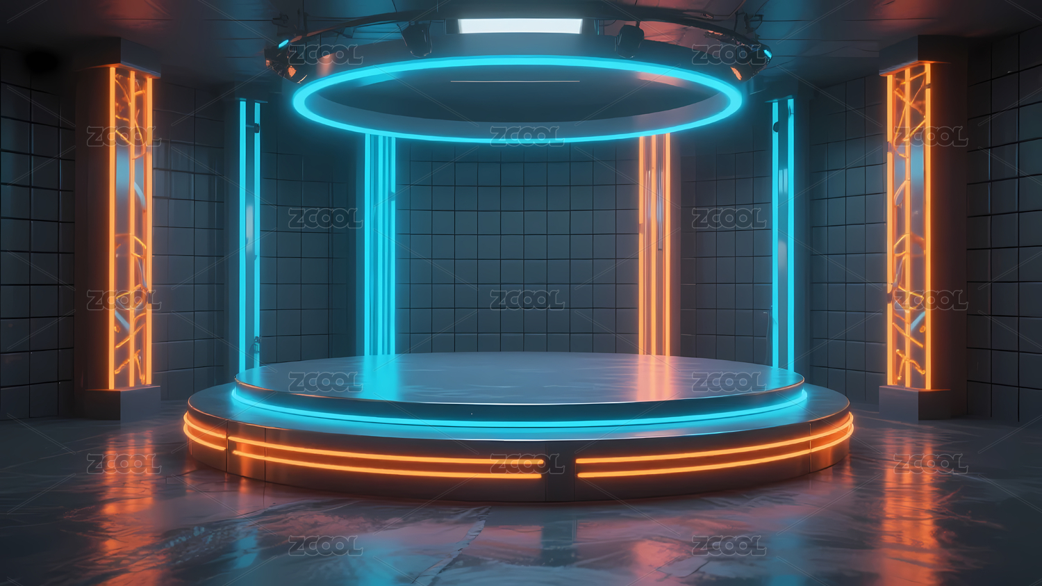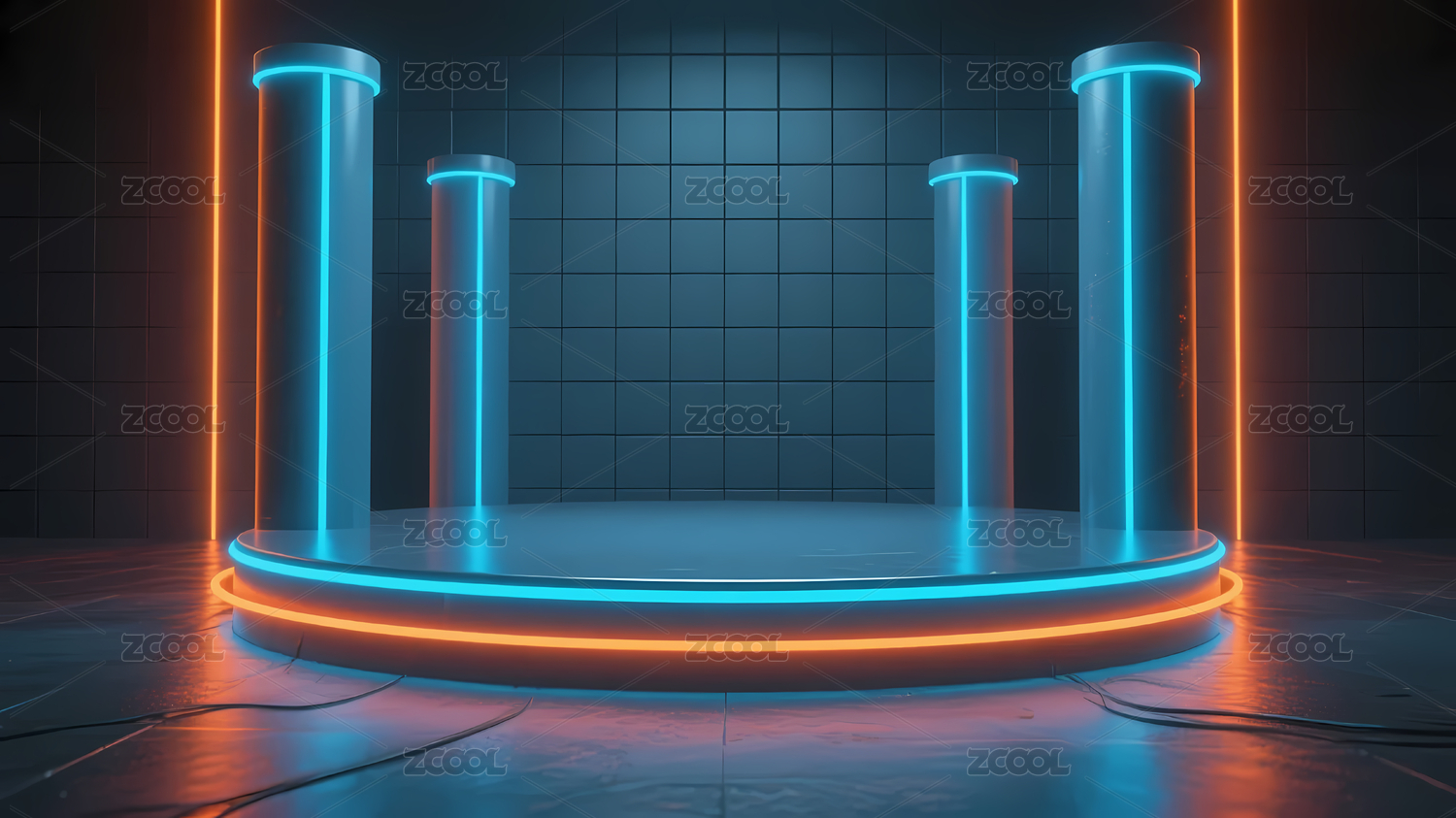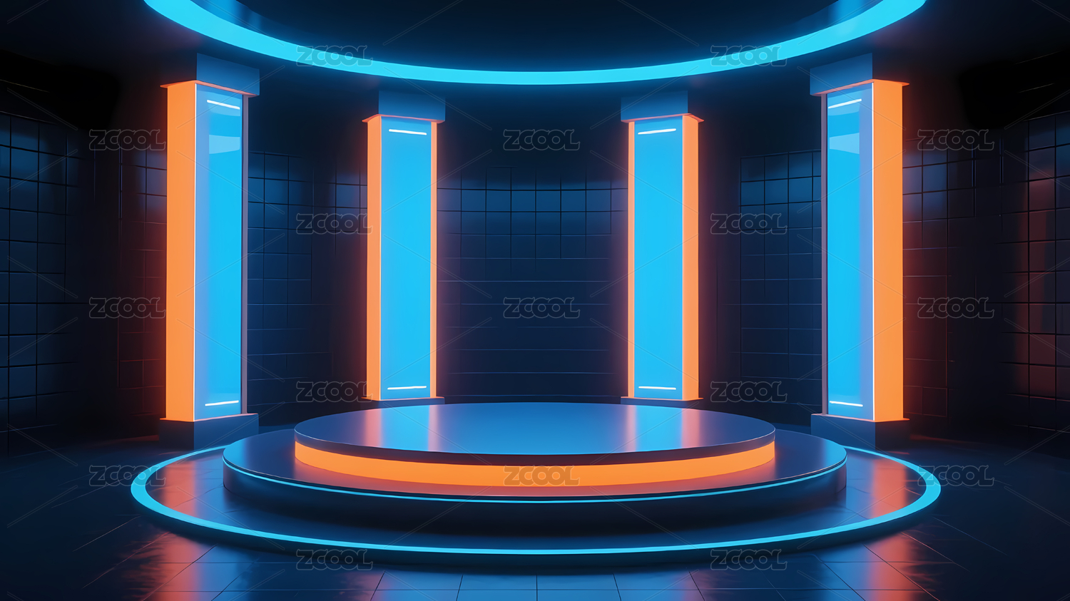 背景,科技,装饰,舞台,发光,圆形,灯光,立柱,冷暖,墙壁