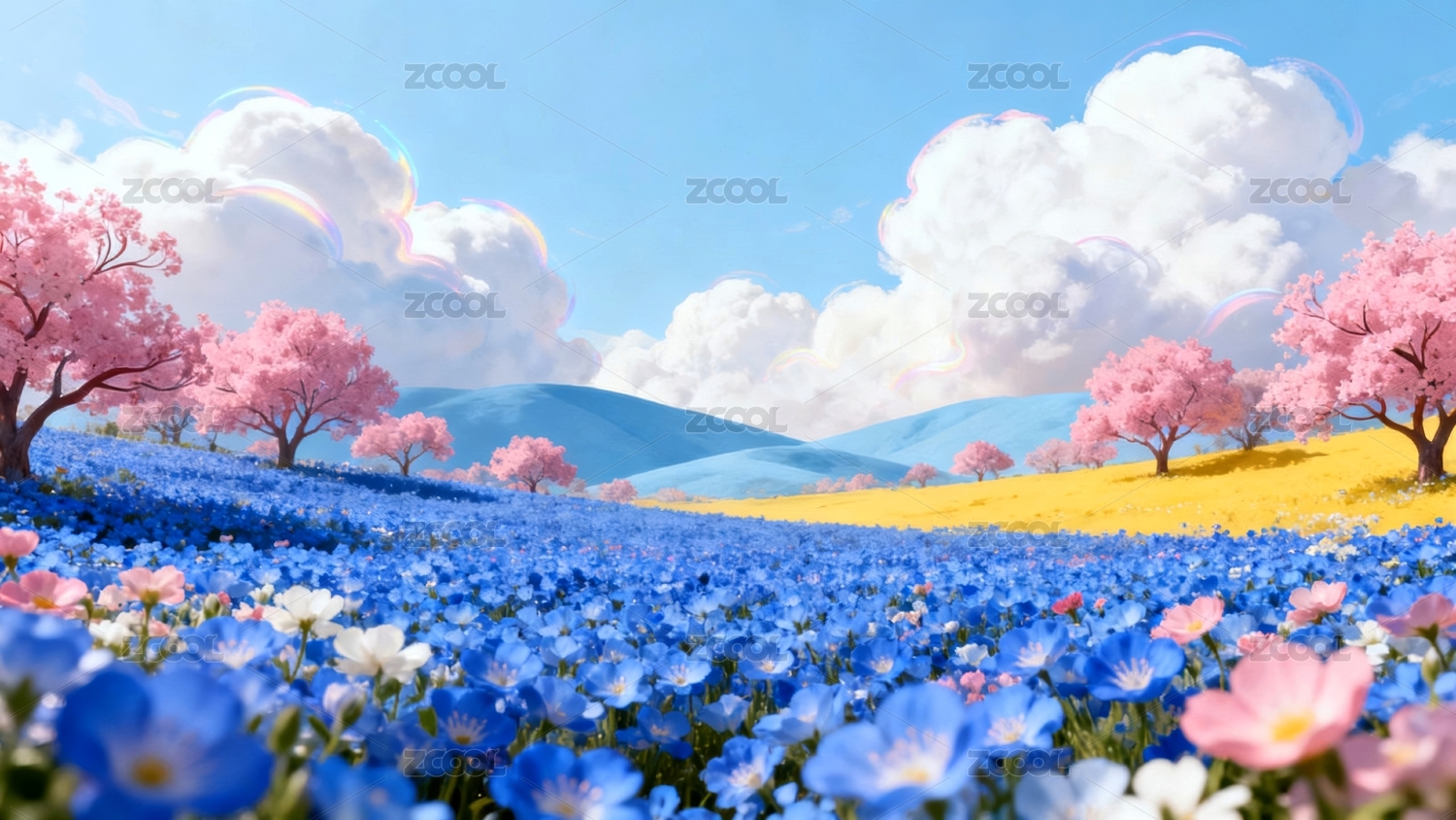 主视觉,商业,壁纸,场景,粉色,蓝色,景观,天空,治愈,花海