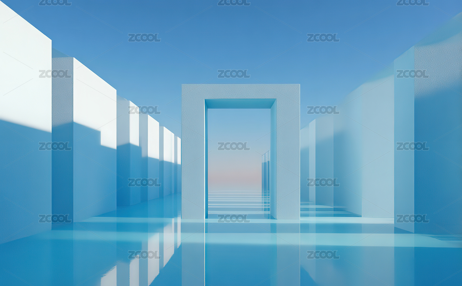 蓝色几何走廊透视图