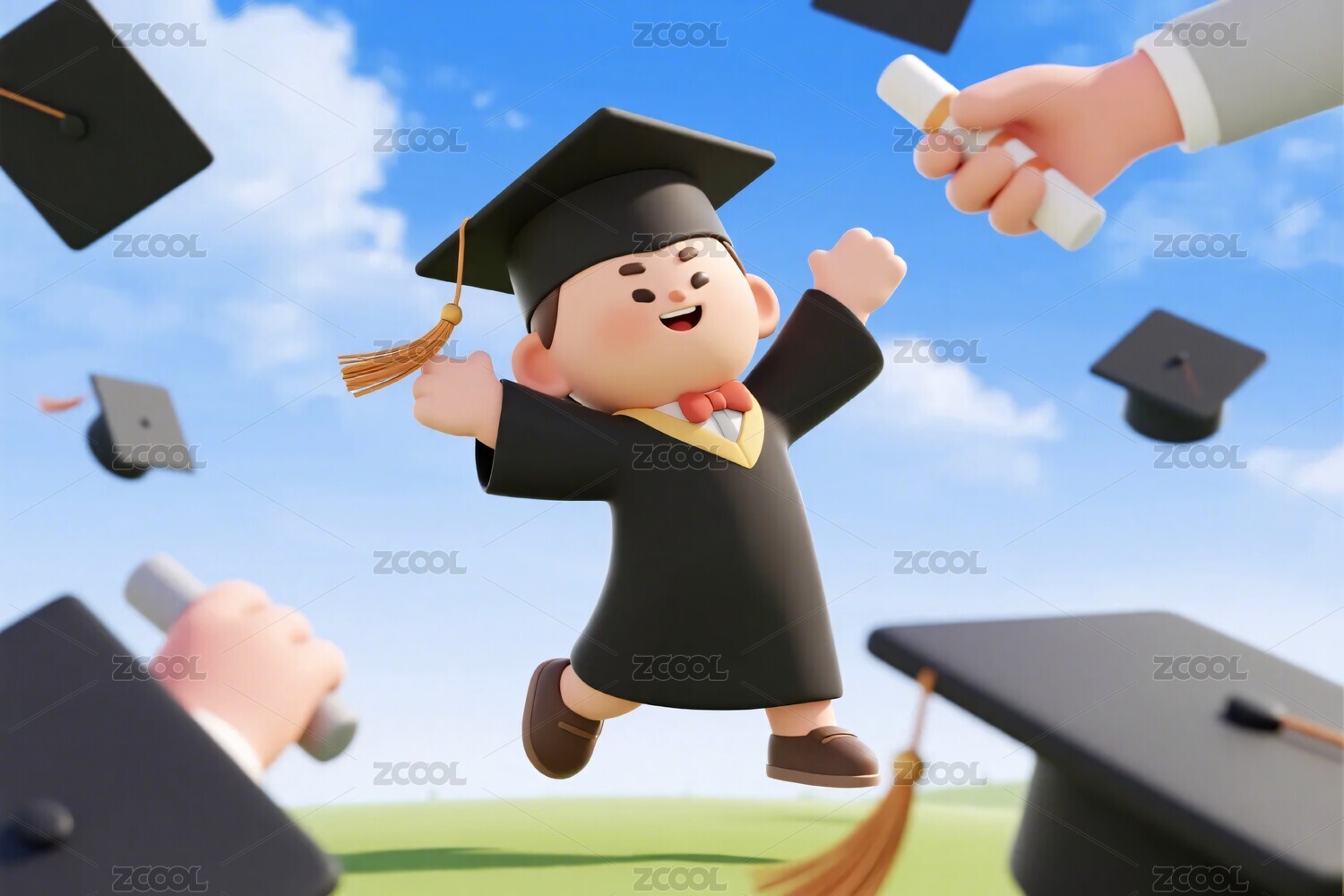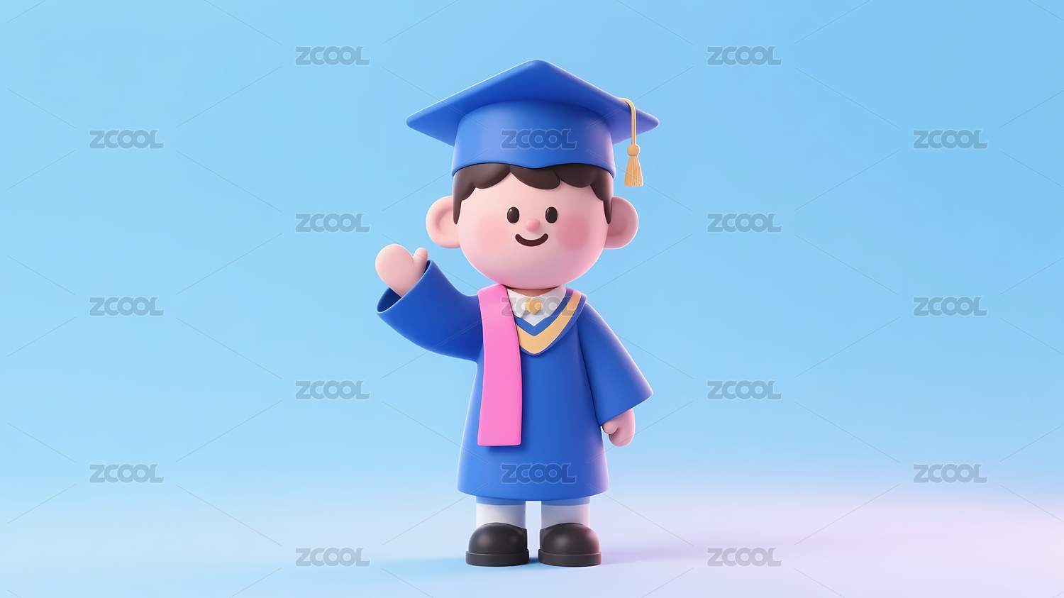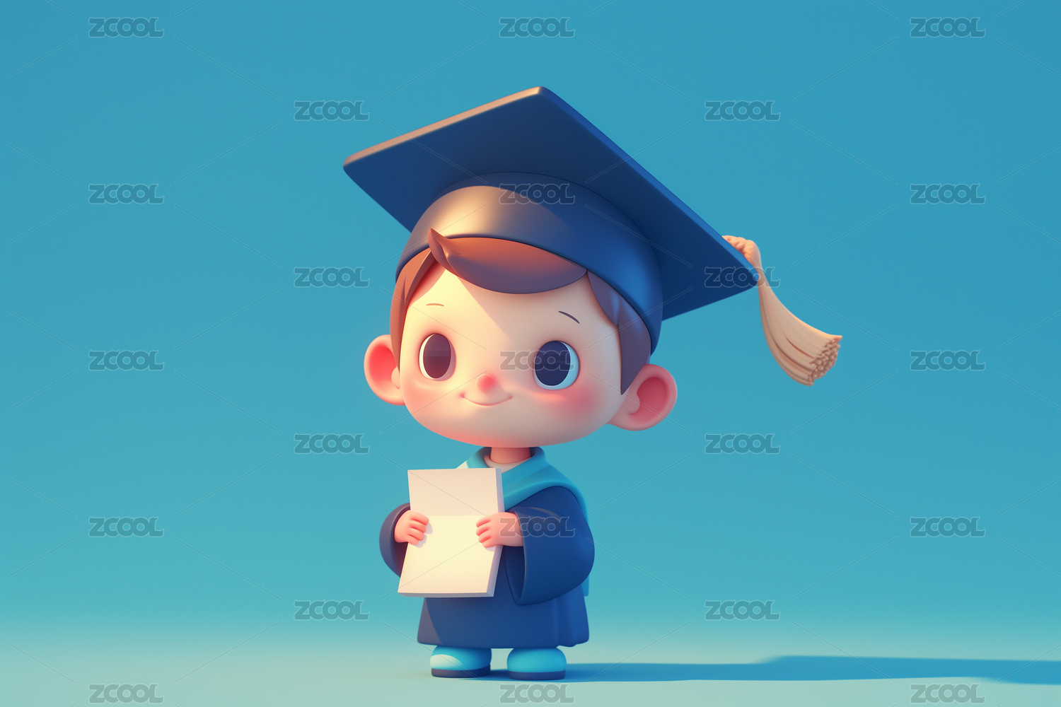 背书包戴博士帽的小孩3D卡通立体人物插画