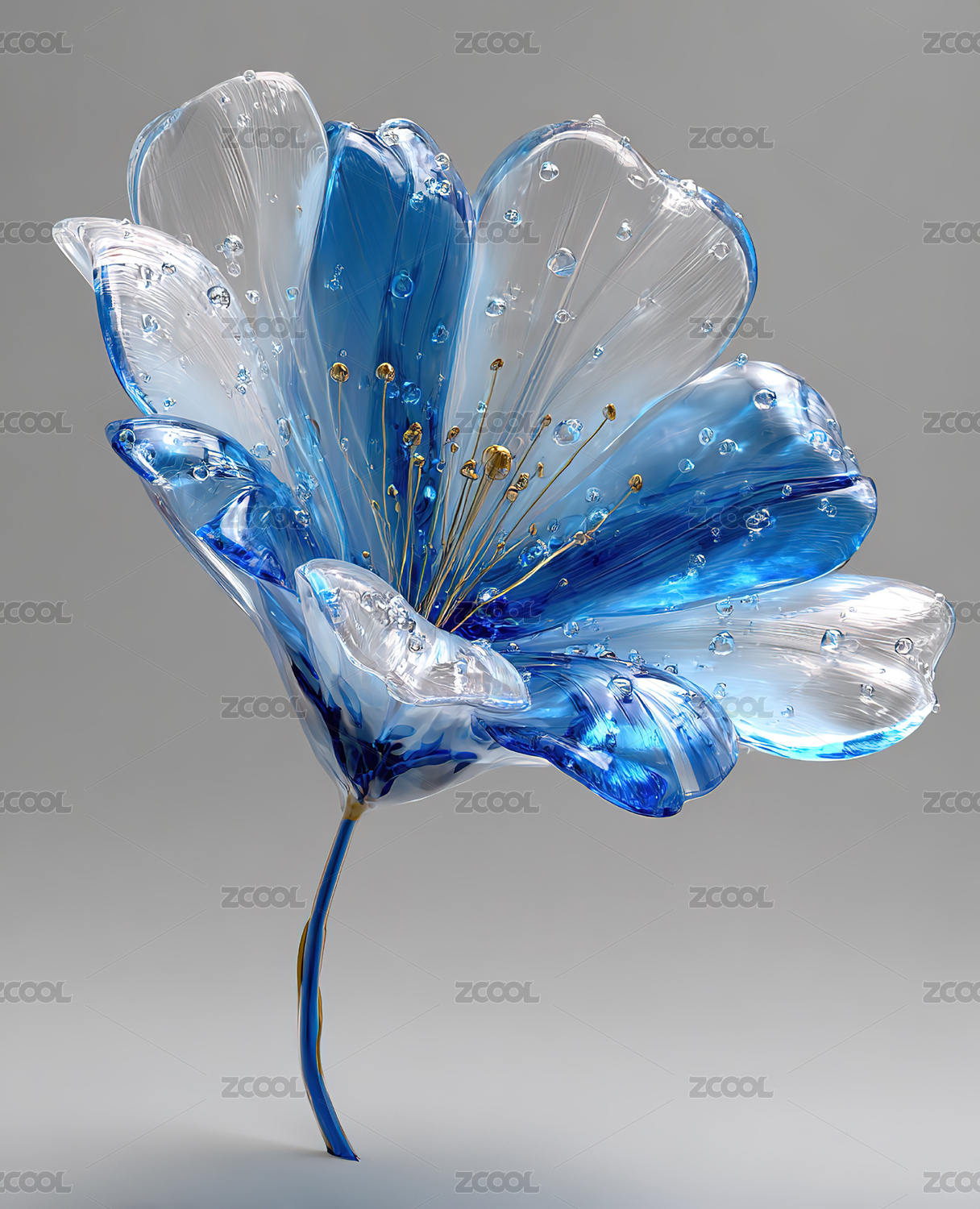 蓝色流体雕塑绽放 梦幻飘逸景象