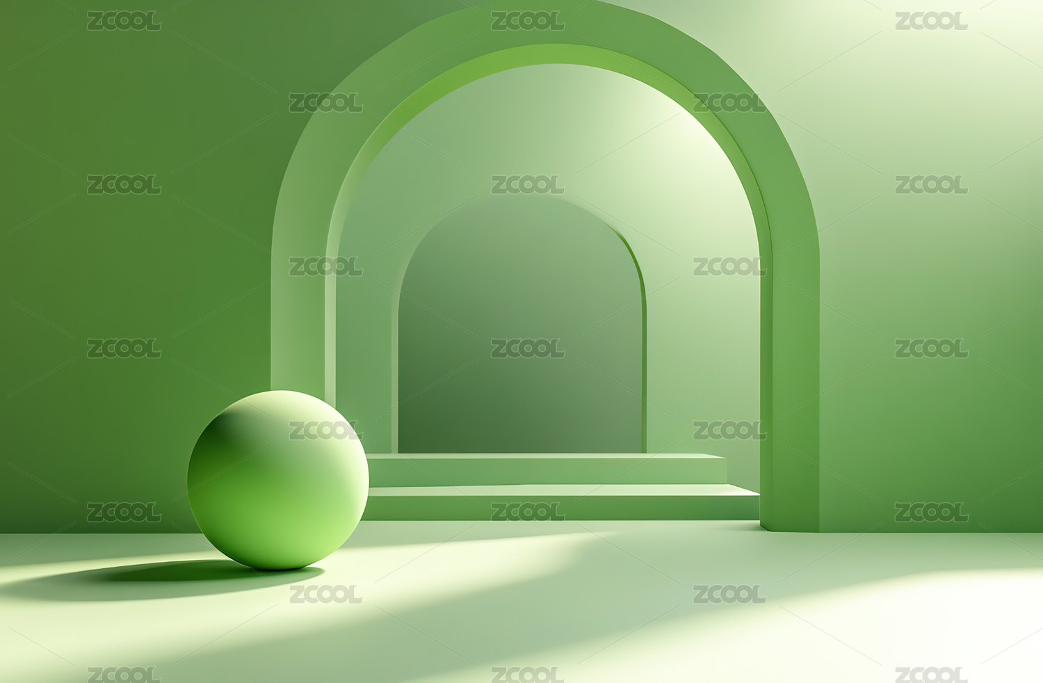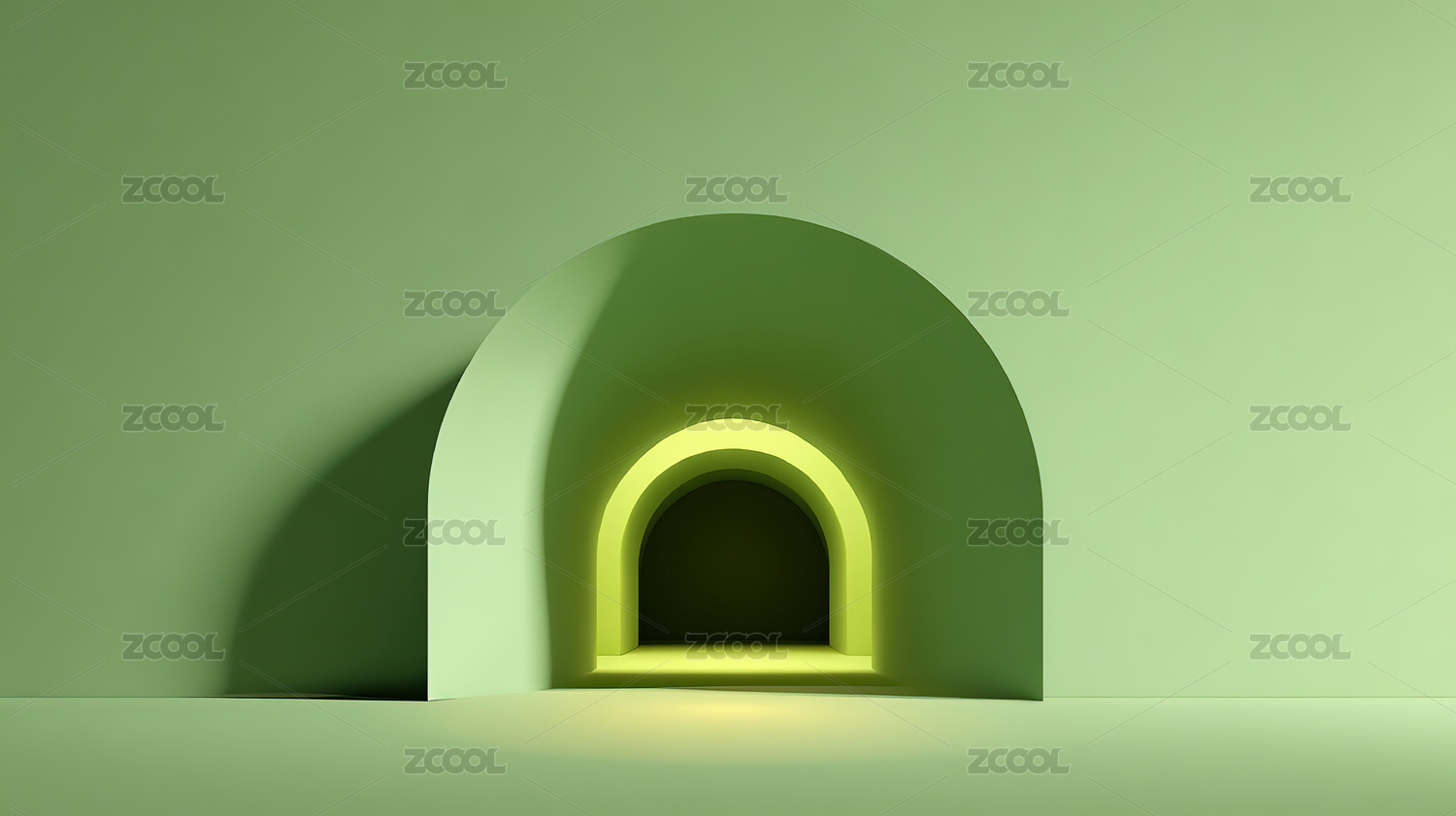 绿色拱门与光亮圆形空间