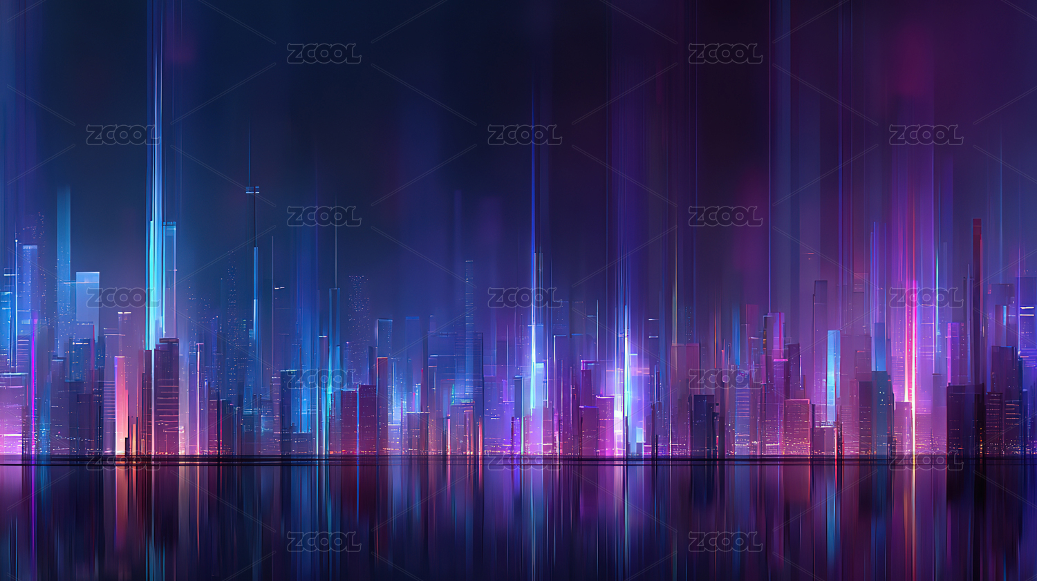 霓虹都市夜景倒影