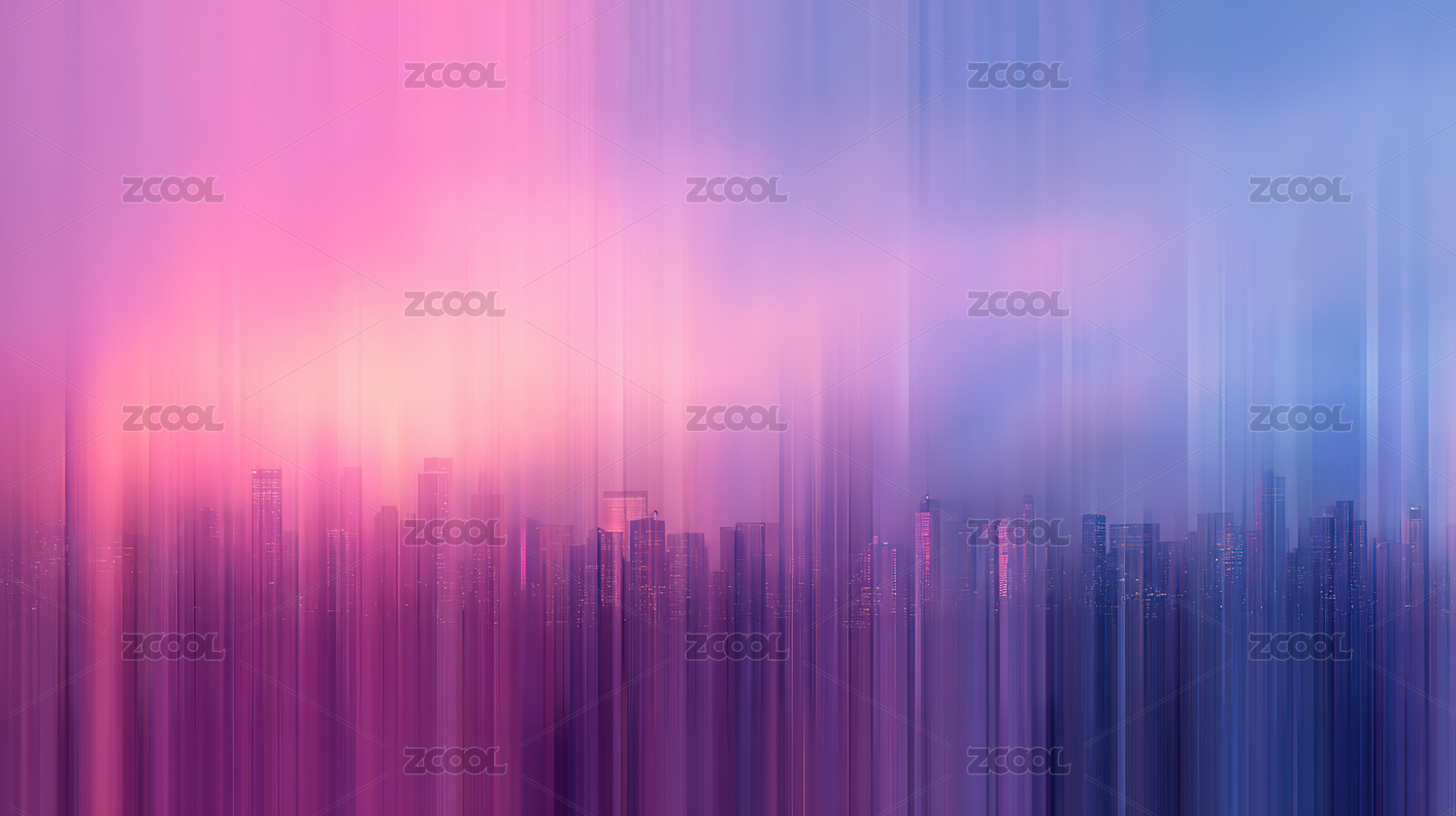 城市剪影与梦幻色彩交融