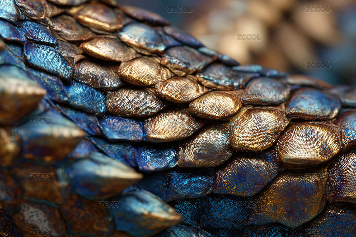 鳞片,纹理,光影,交错,细节,特写,蓝色,金色,光泽,表面