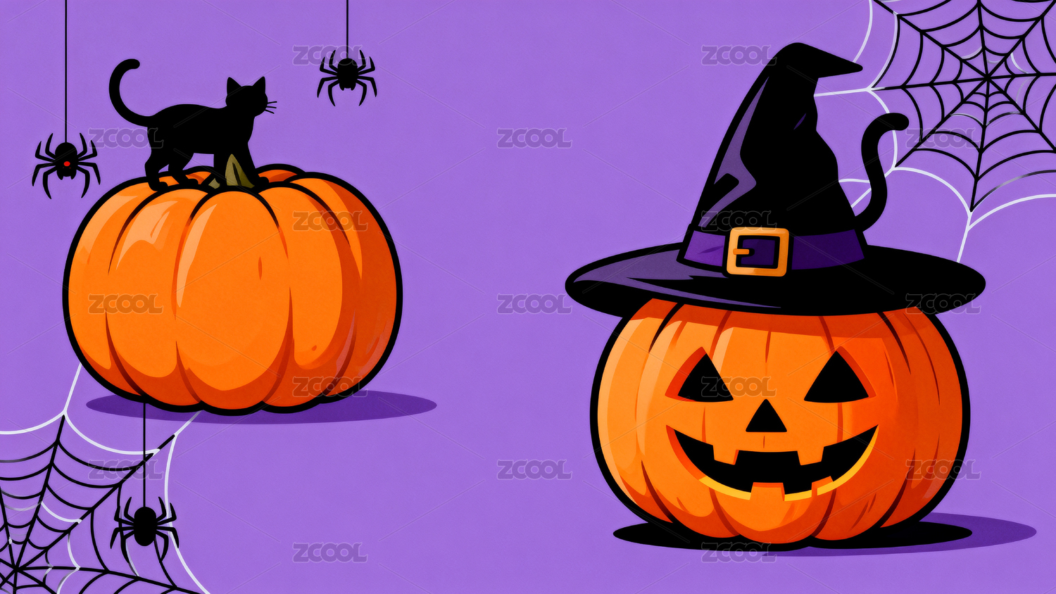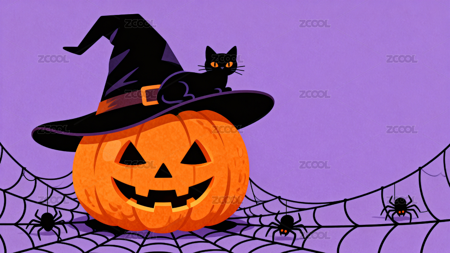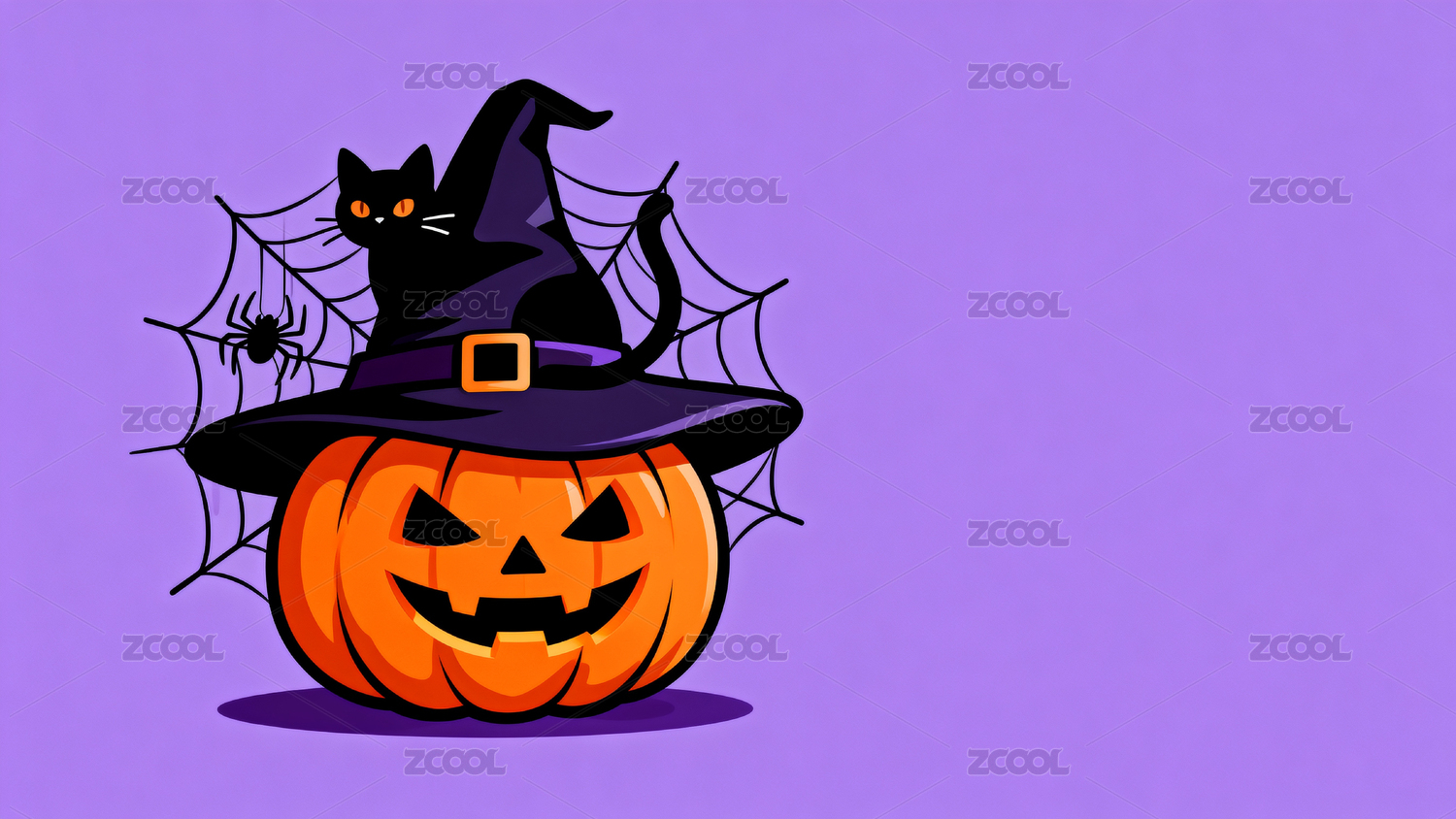 万圣节南瓜猫与蜘蛛网