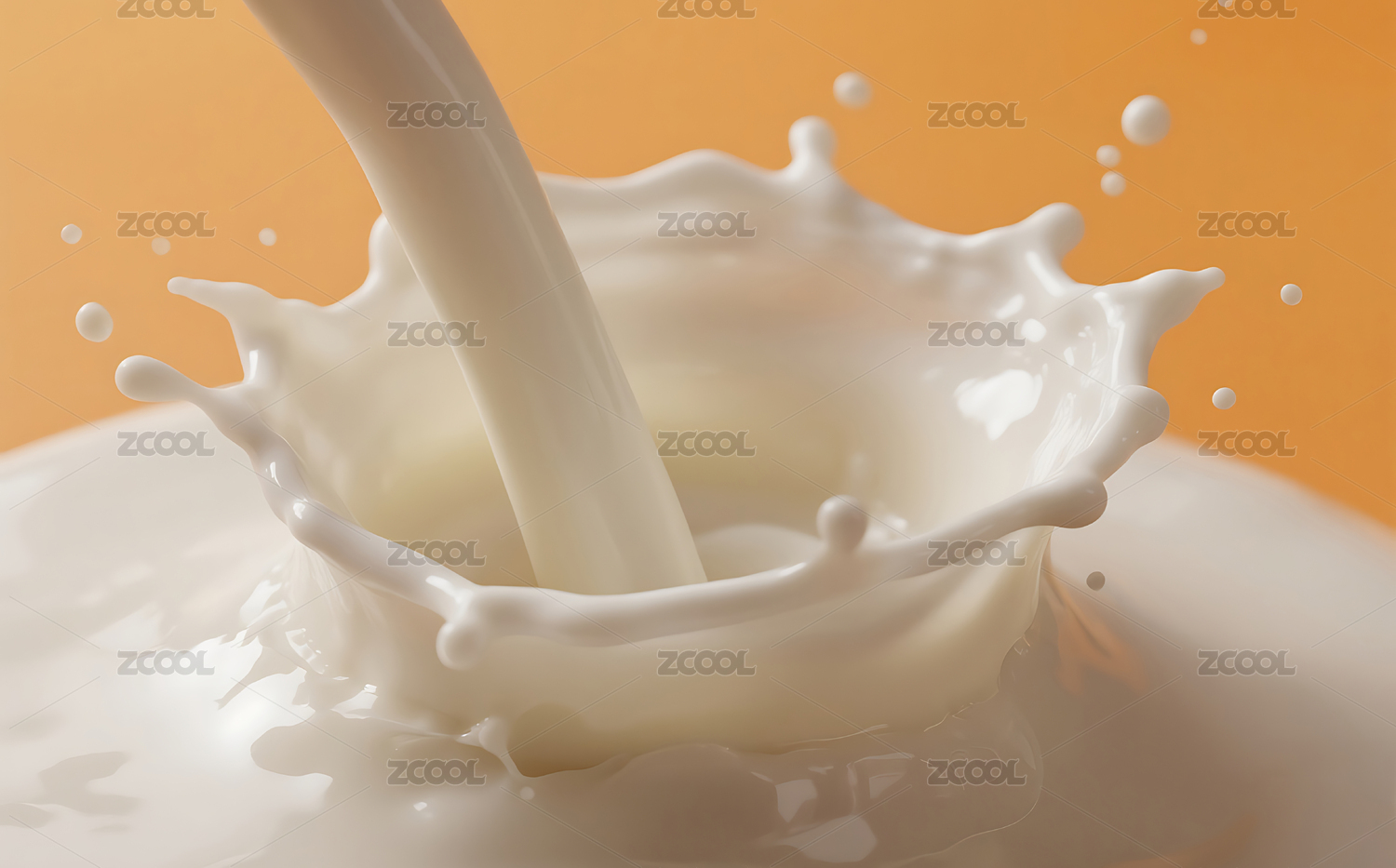 白色牛奶飞溅橙色背景