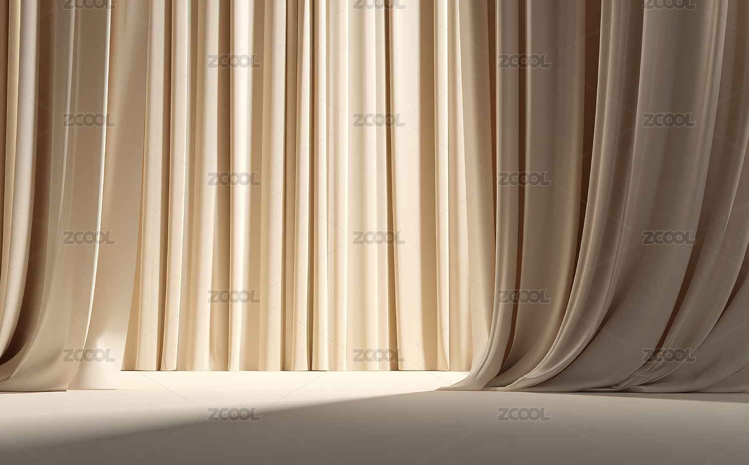 米黄色窗帘轻柔飘逸的质感和光影效果
