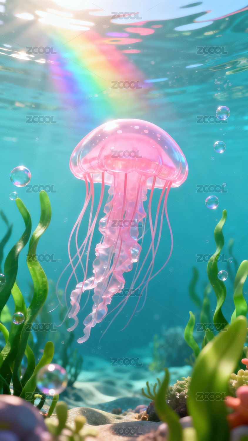 蓝色梦幻水母特写海洋生物海底世界生物背景