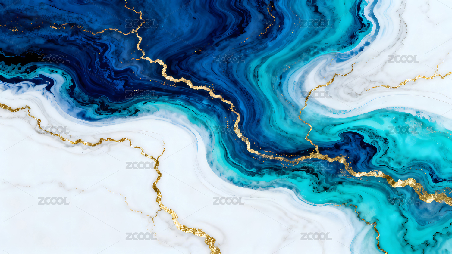 流体画蓝金艺术装饰场景