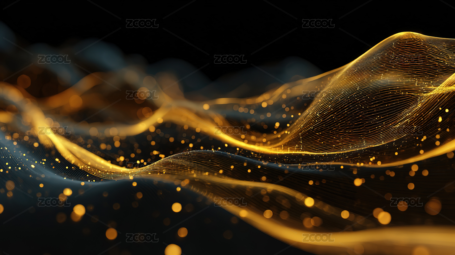 金色波浪与光点交织的抽象背景