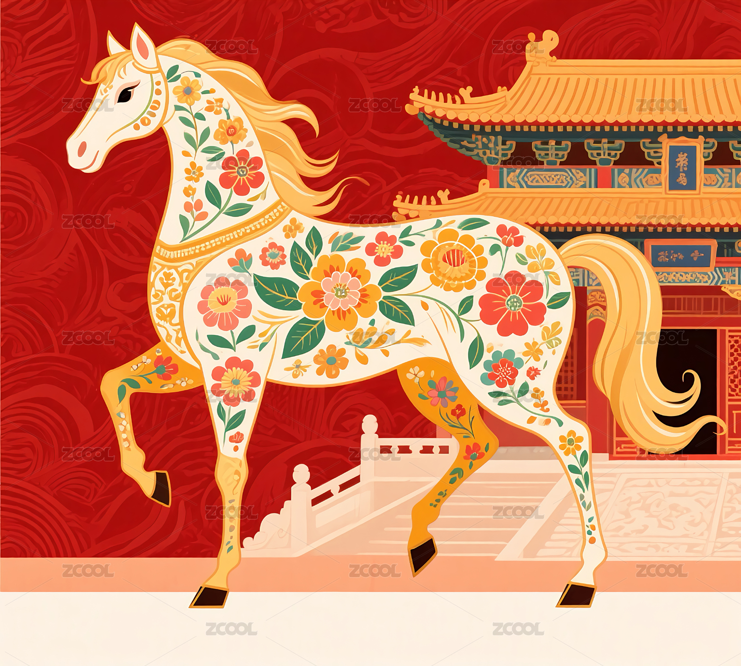 中国风格纹样装饰的马